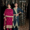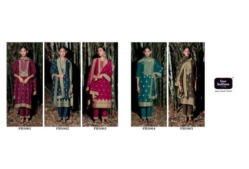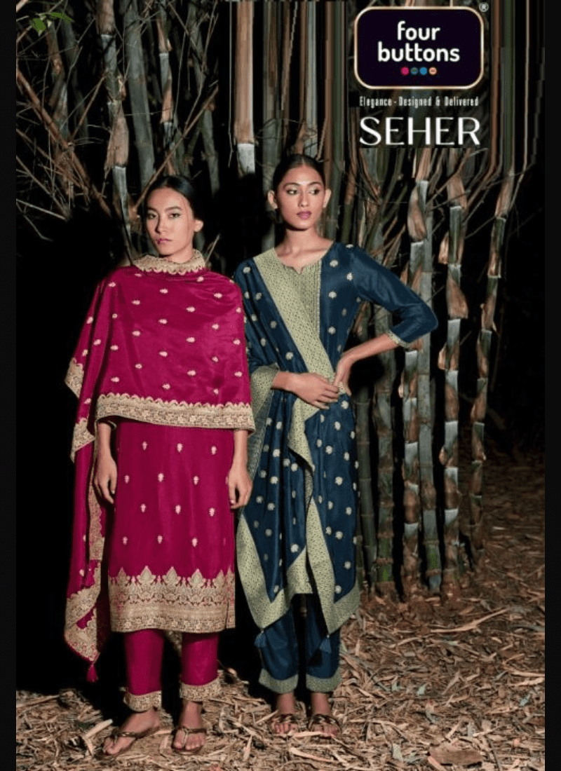 Four Buttons Seher New Lakhnavi Jacquard Kurti With Bottom Dupatta Collection At Wholesale Price