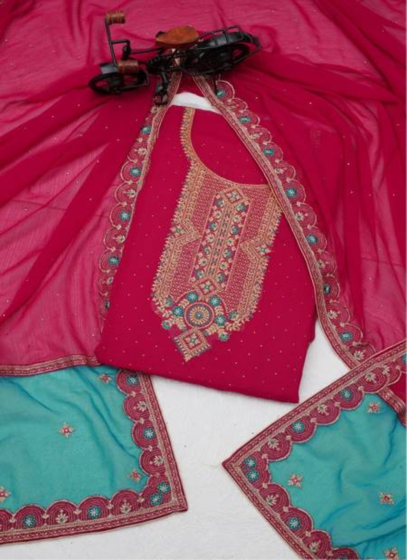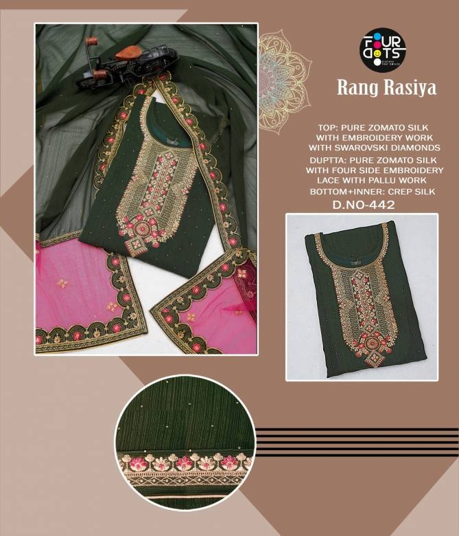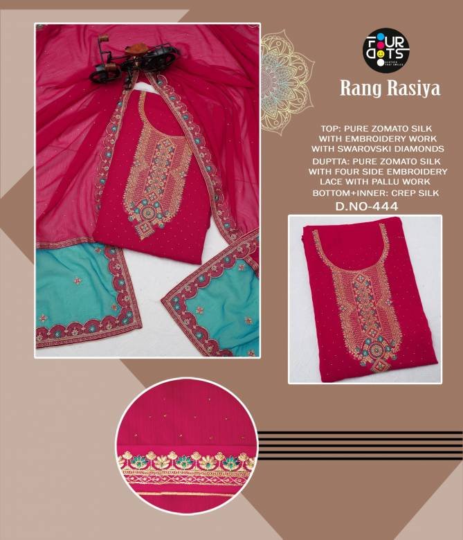 Four Dots Rang Rasiya Silk With Embroidery Non Catalog Indian Dress Materials At wholesale Price