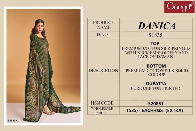 Ganga Danica 1835 Designer Cotton Silk Salwar Suits Wholesale Catalog
