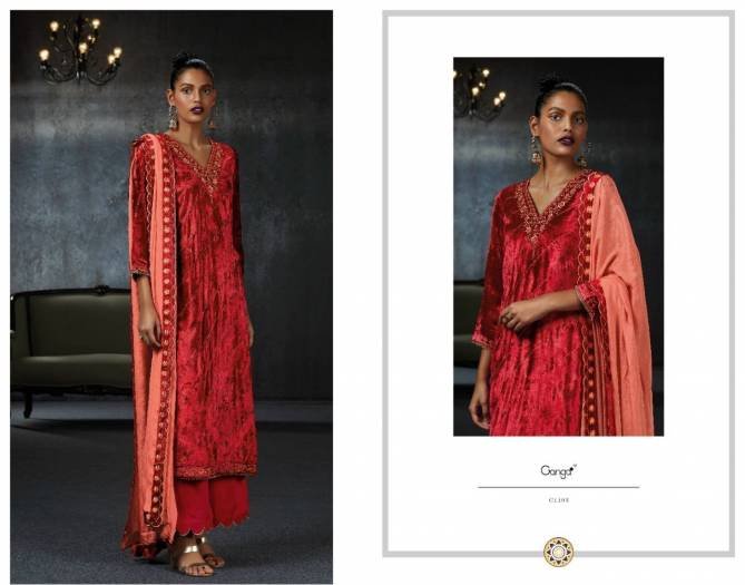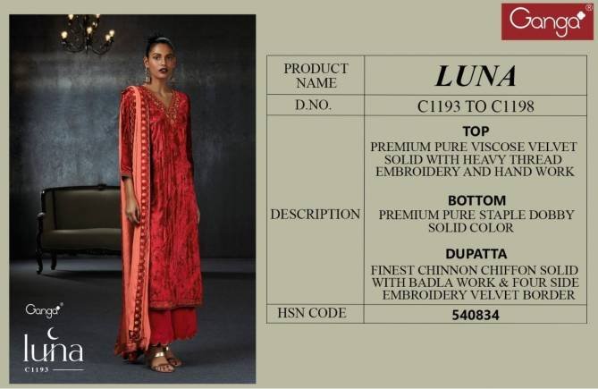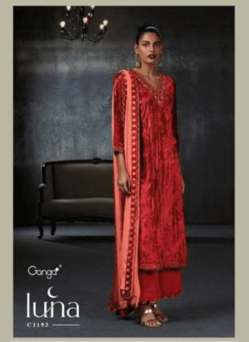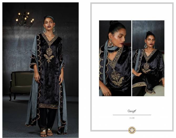 Ganga Luna Embroidery Designer Velvet Salwar Suits Wholesale Catalog
