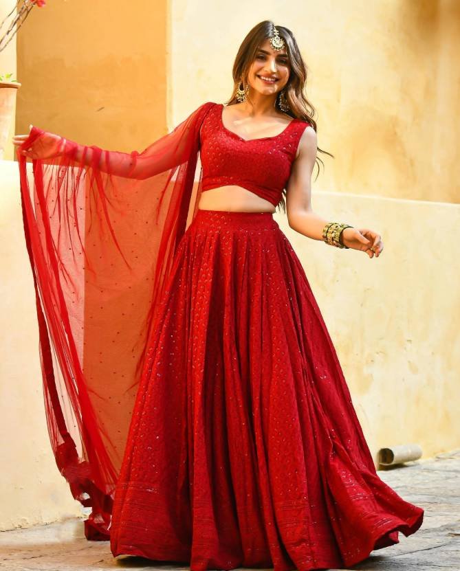 FabricRayon | Work: Lucknowi Chikankari | Dupatta: Soft Net With Pearl | Unstitched Blouse Piece | Lehenga: Semi Stitched Free Size (Made to Measure)