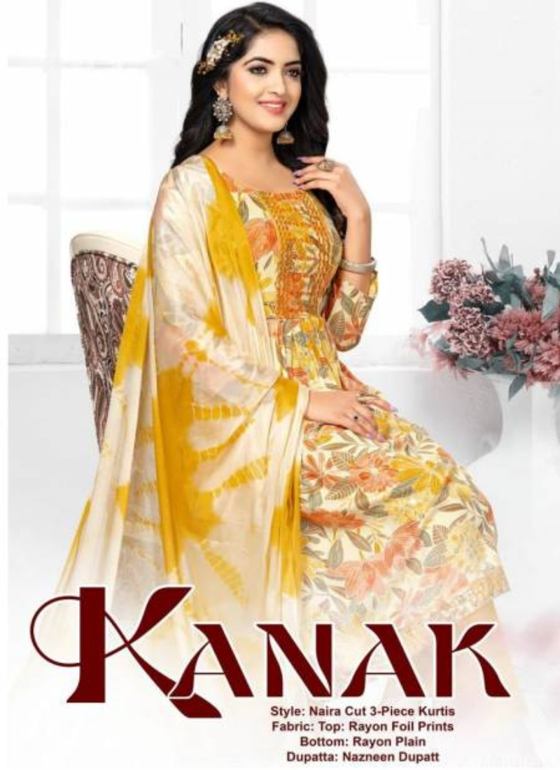 Hirwa Kanak Rayon Ladies Kurtis With Bottom Dupatta Wholesale Catalog