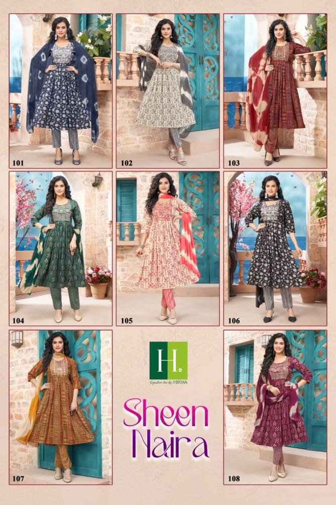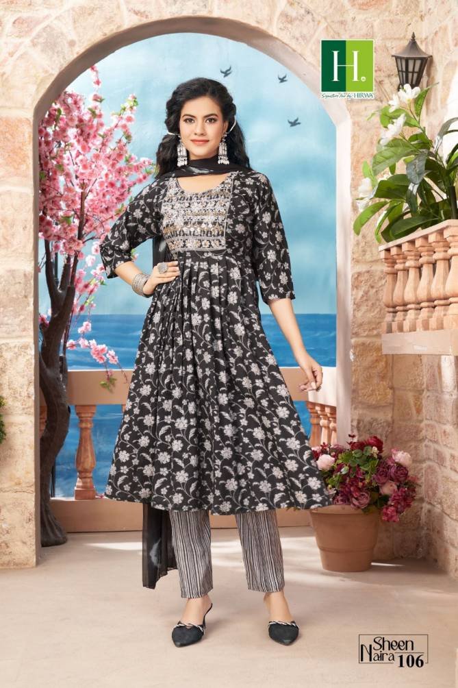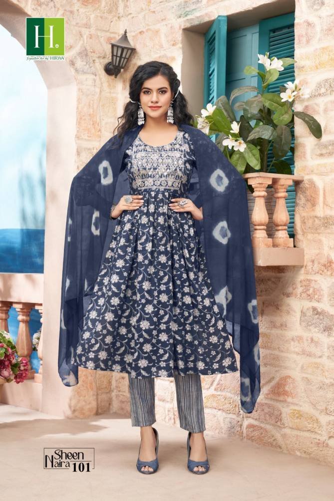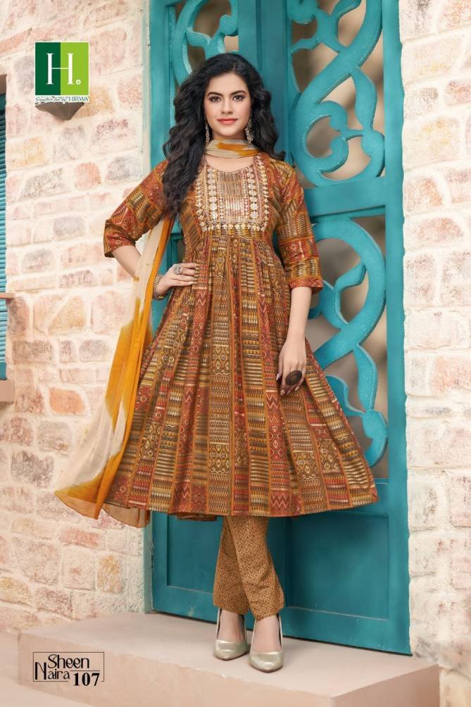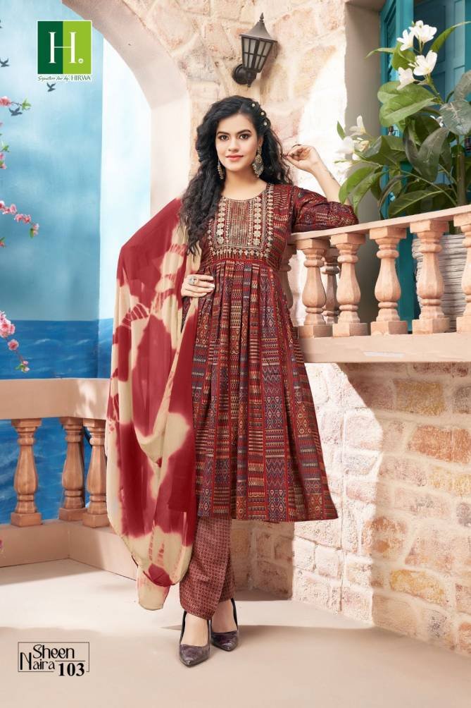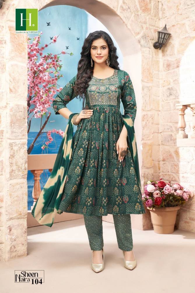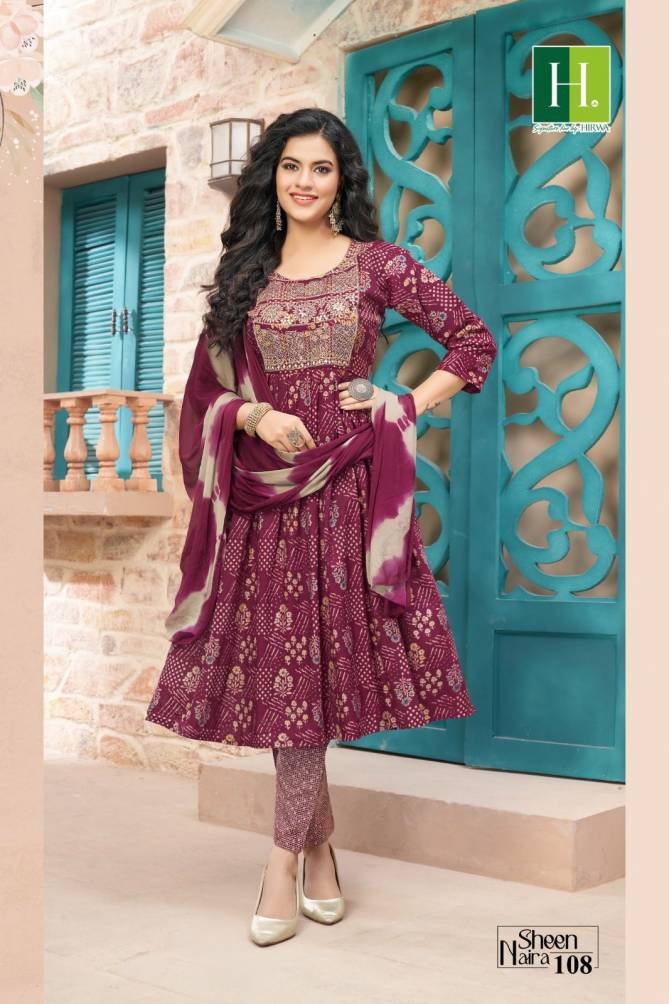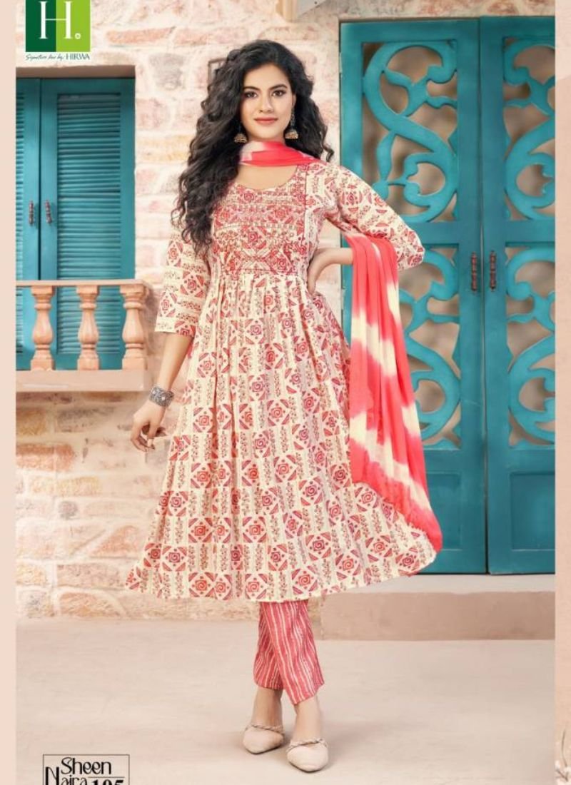 Hirwa Sheen Printed Naira Cut Plus Size Kurti With Bottom Dupatta Wholesale At Price