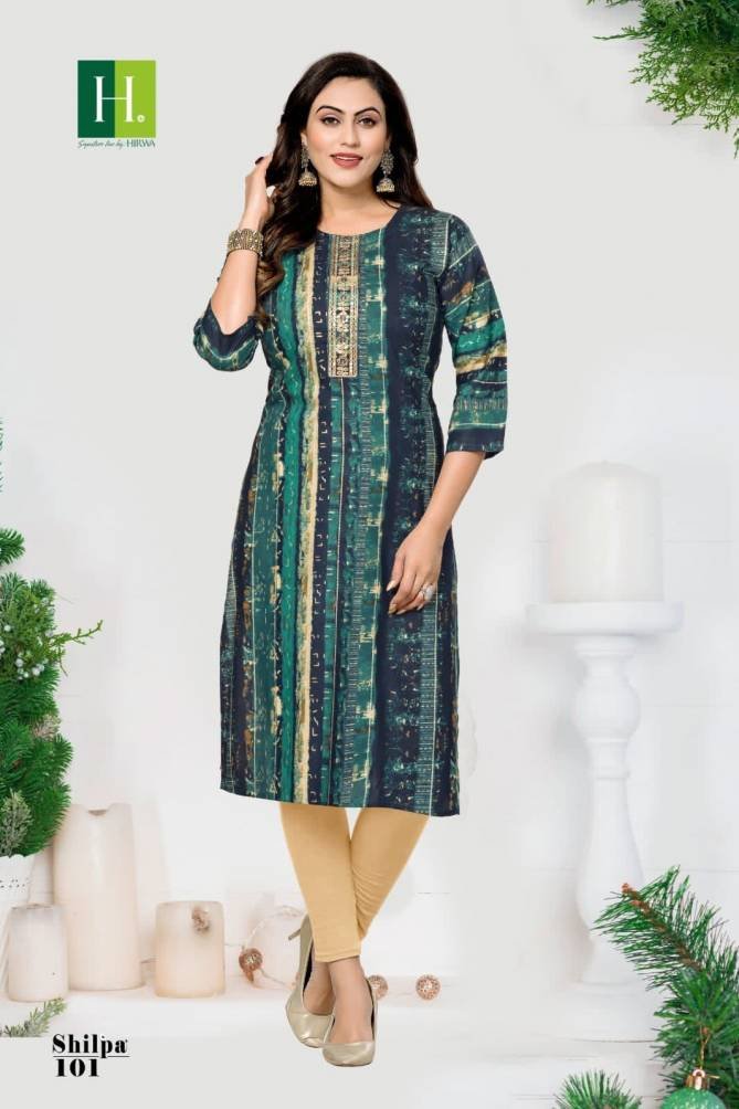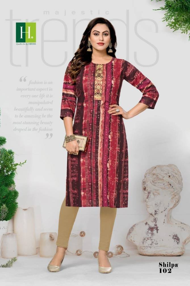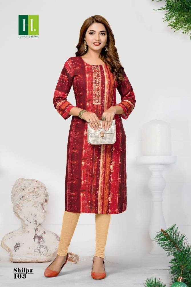 Hirwa Shilpa Regular Wear Rayon Designer Ladies Kurtis Wholesale Catalog