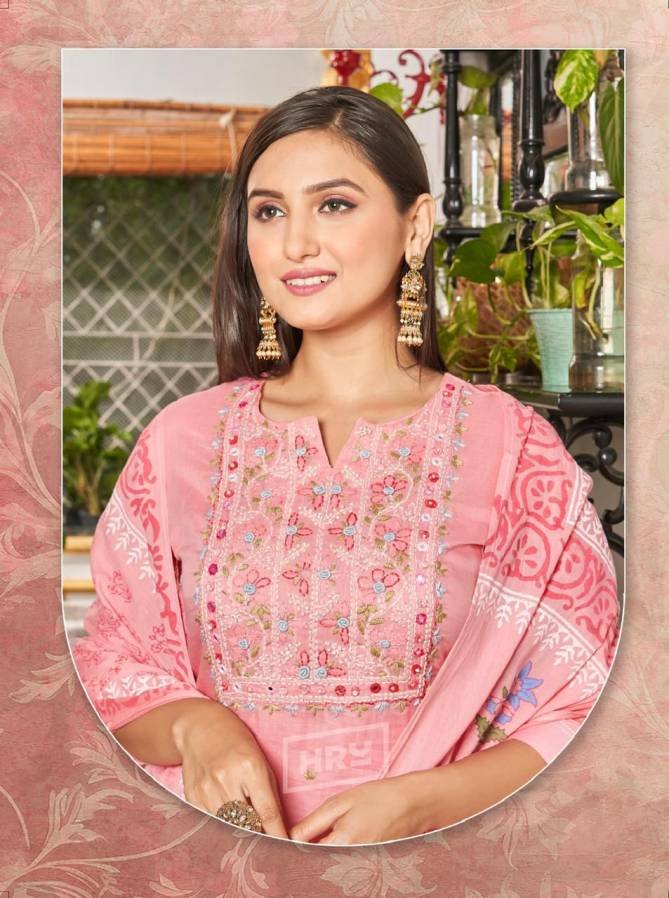 HRU Lucknawi Suta Vol 4 Latest Designer Mal Mal Cotton Kurti With Bottom Dupatta Wholesale Catalog