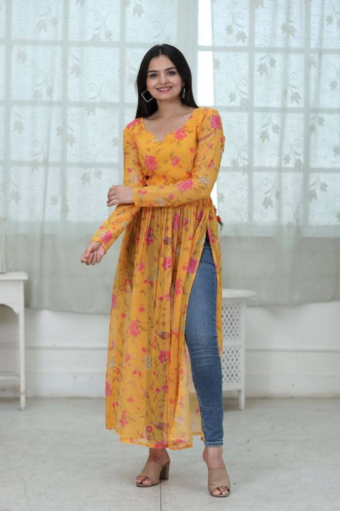 KA 1047 Floral Printed Designer Georgette Ladies Kurtis Wholesale Catalog