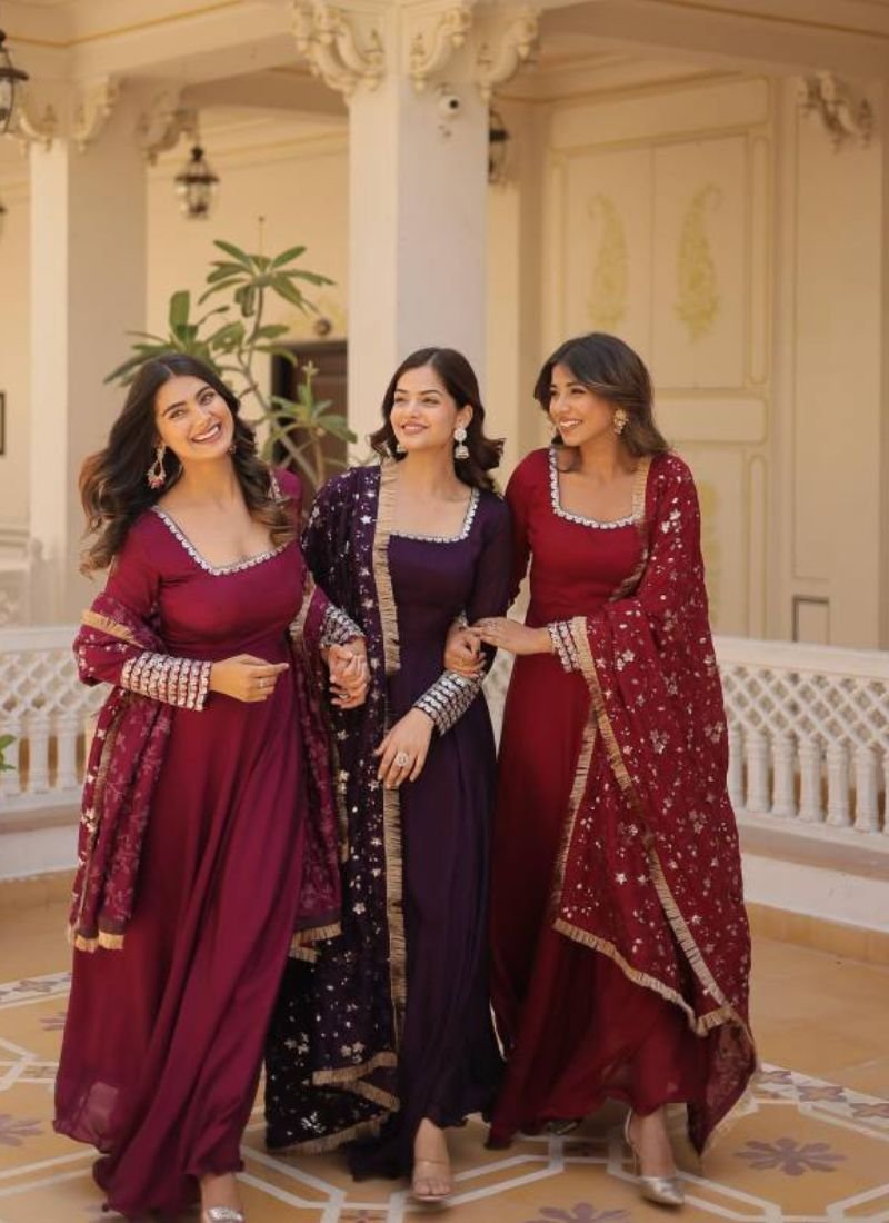 FabricTOP FABRIC & WORK :-Vichitra Silk With Embroidery Zari Sequins-work | LENGTH :- 56 INCH | FLAIR :- 8 MTR | LINING :- Cotton (Full Inner Top To Bottom) SLEEVES :- Full Sleeve | NECK TYPE :- Fancy Square Neck | STITCHING TYPE :- Wire-Picco Work | DUPATTA FABRIC & WORK:- Vichitra Silk With Embroidery Zari Sequins-work and Designer lace border | Length:- 2.3 MTR (Single Available – 100 Rs. Per Pcs Extra for Singles)