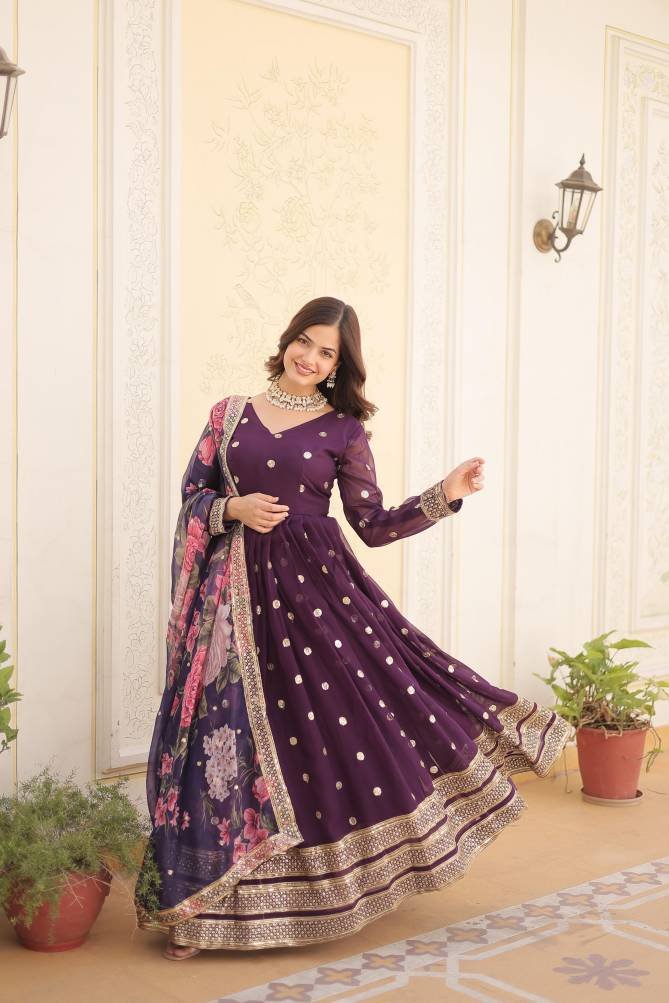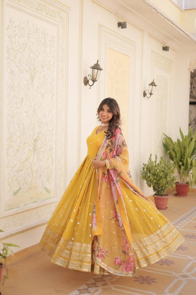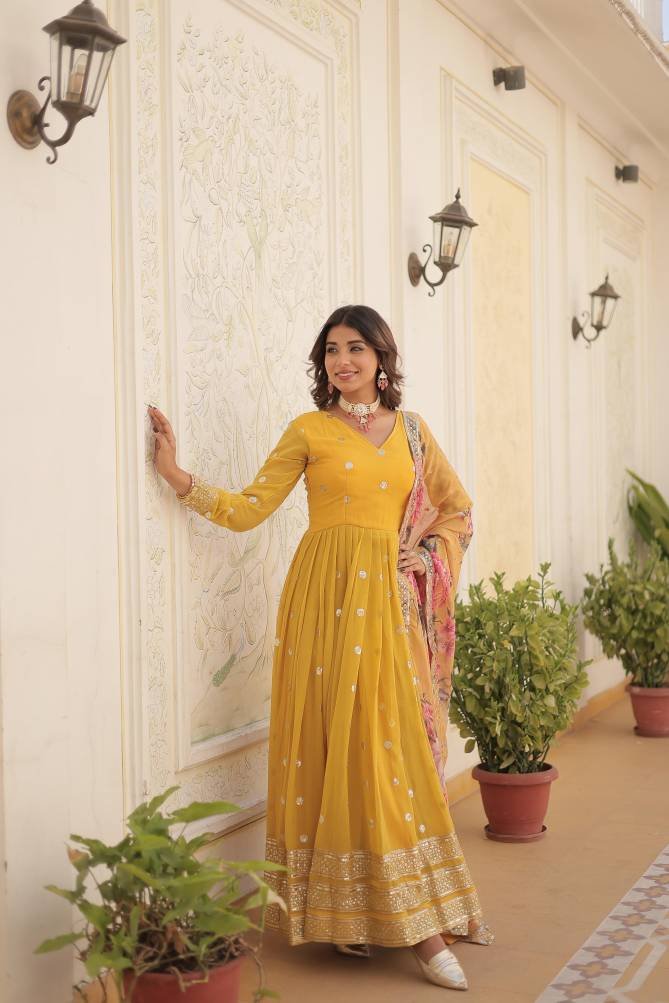 KA 1103 Ethnic Wear Faux Georgette Gown With Dupatta At Wholesale Price