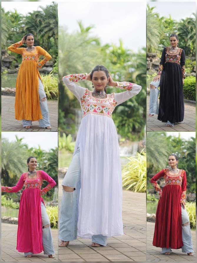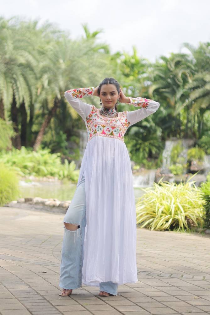 KA 1130 Navaratri Special Gamthi Work Kurti At Wholesale Price