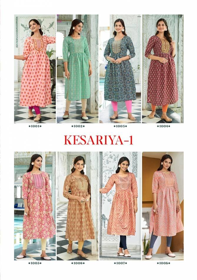 Kajal Style Kesariya Vol 1 Nayra Cut Designer Plus Size Wholesale Kurtis Catalog