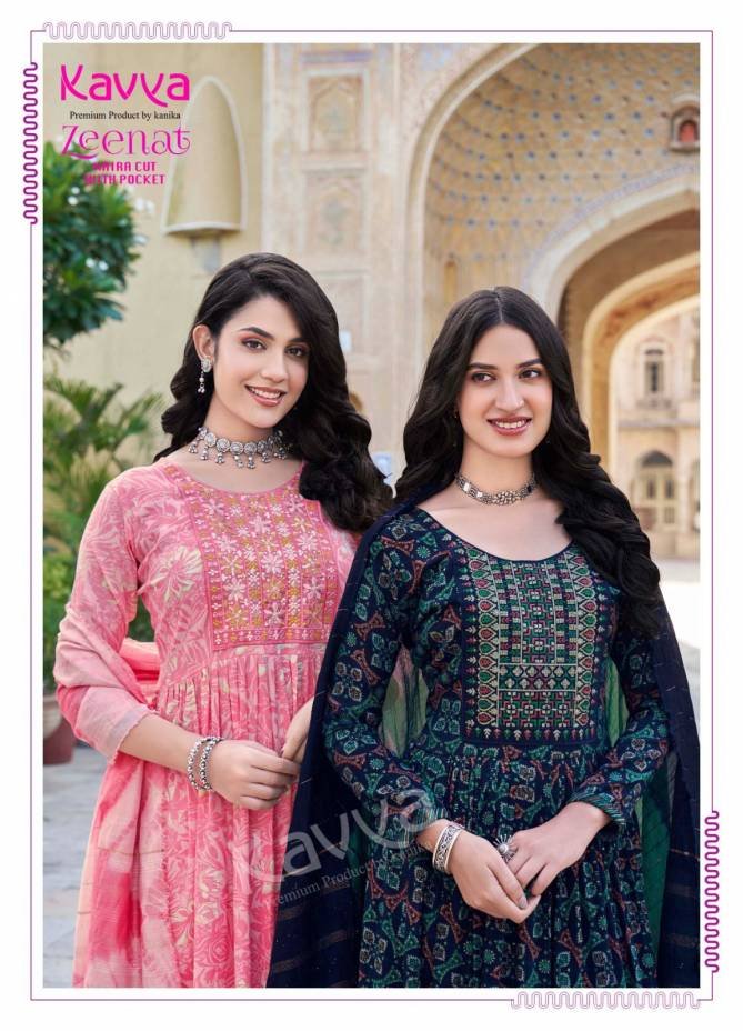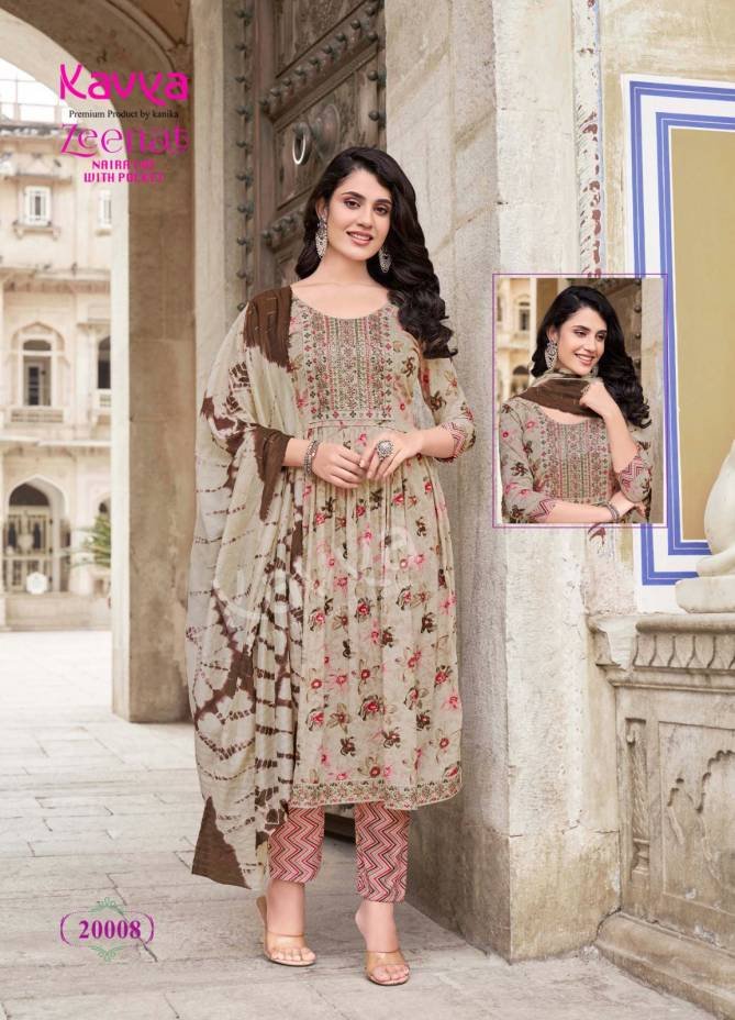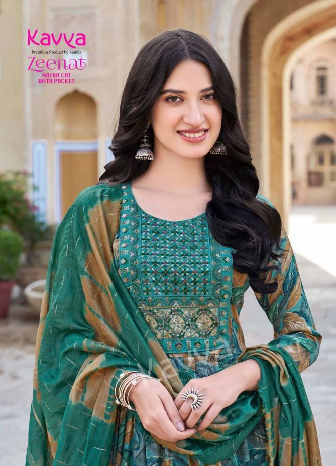 Kavya Zeenat Vol 20 Foil Printed Naira Cut Designer Kurti With Bottom Dupatta Wholesale Catalog