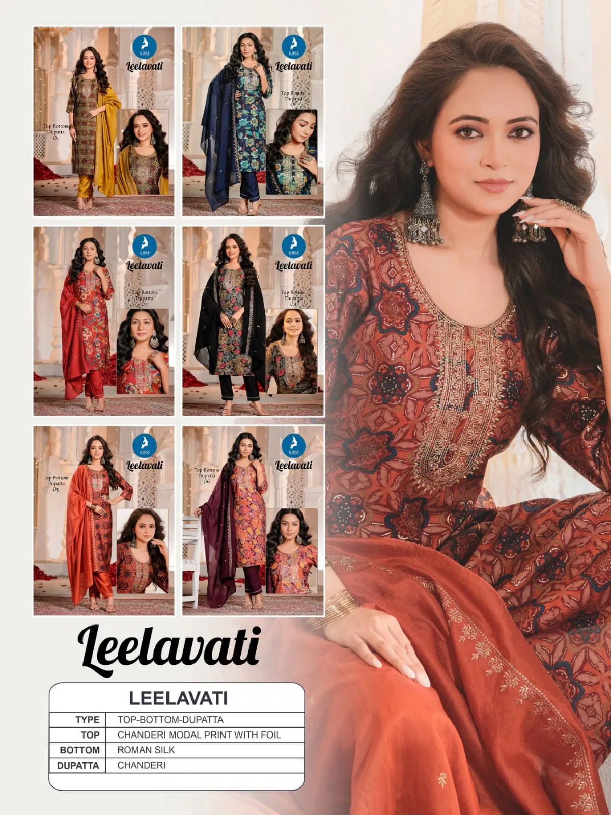 FabricTOP: CHNDERI MODAL PRINT WITH FOIL | BOTTOM: ROMAN SILK | DUPATTA: CHANDERI