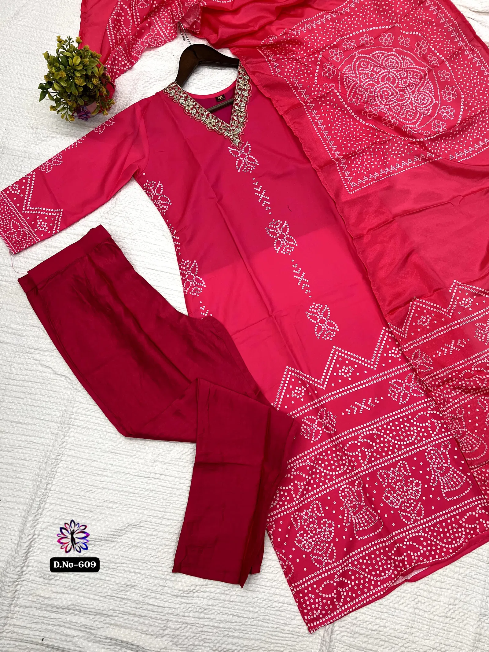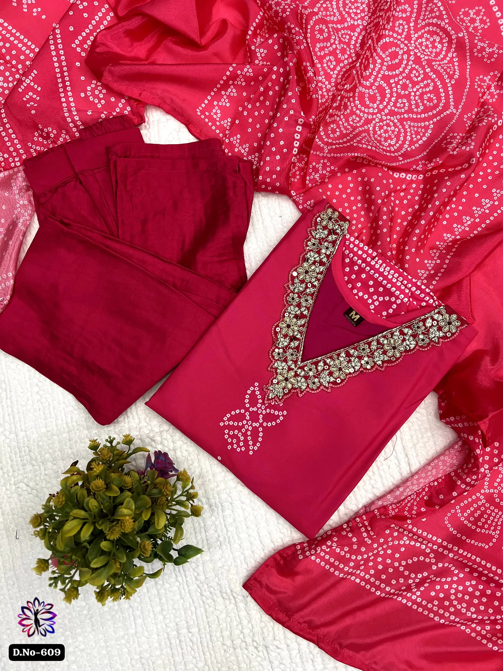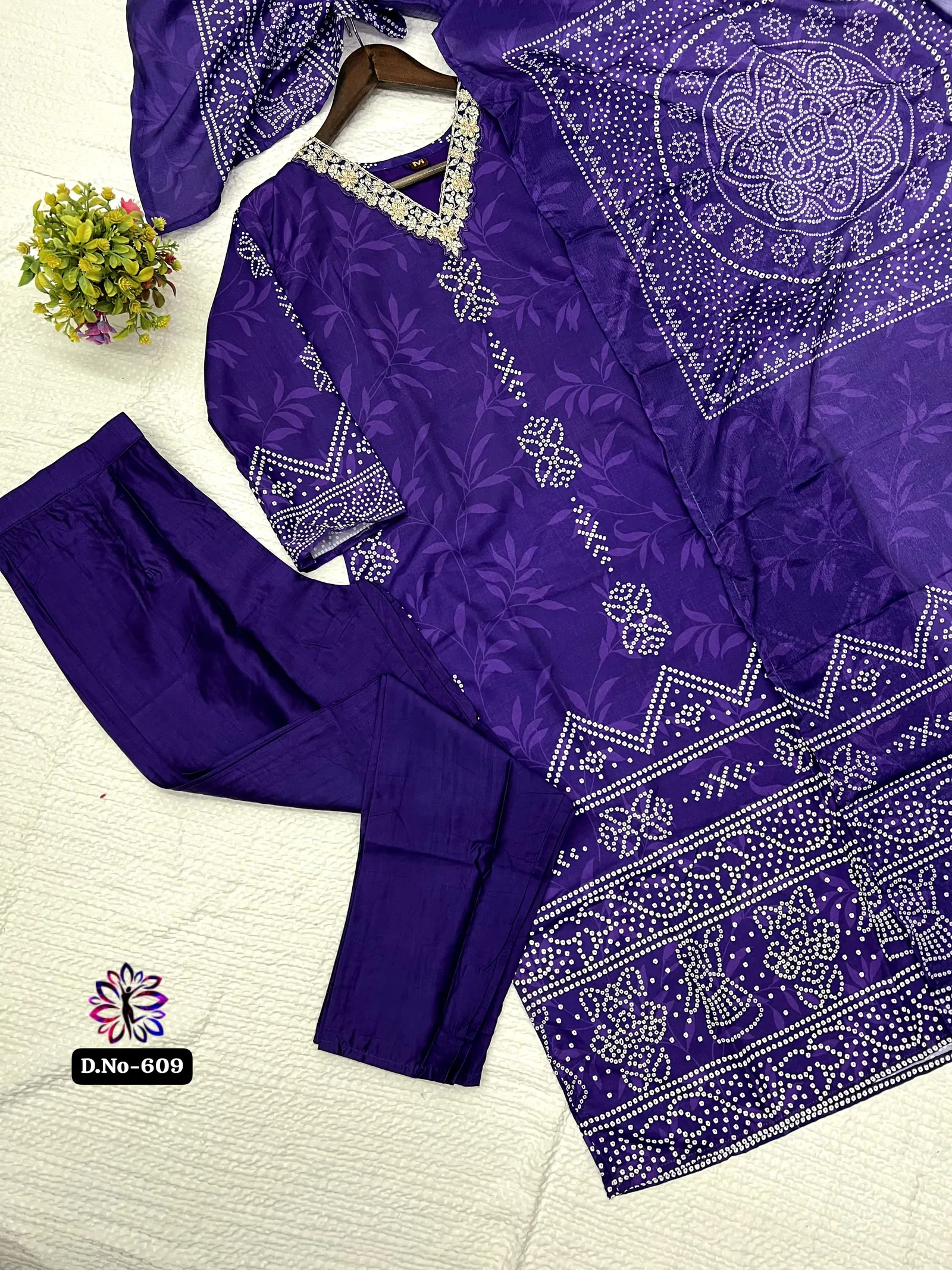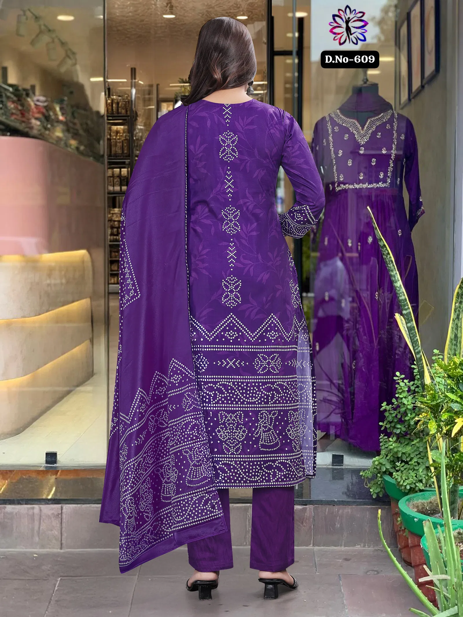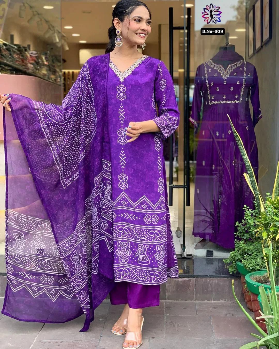 Top — French Crepe (Printed) | Work — V-Neck Embroidered | Bottom – Viscose Gadhval | Dupatta – Printed Chinon (Single Available – 100 Rs. Per Pcs Extra for Singles)