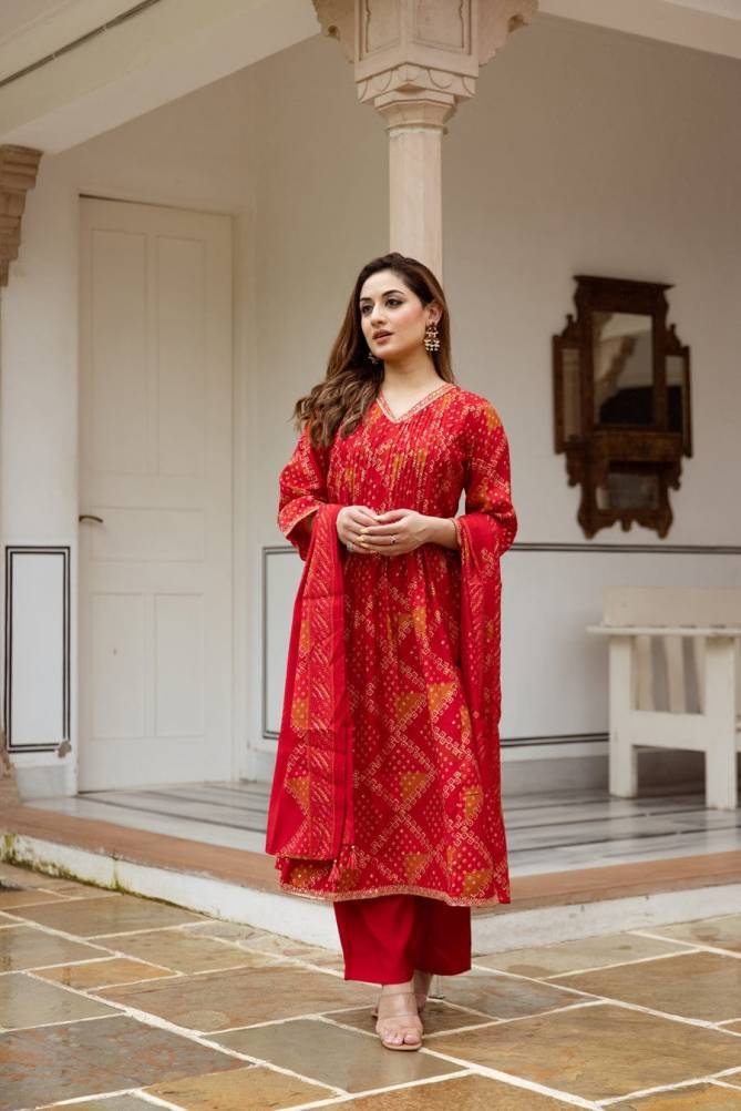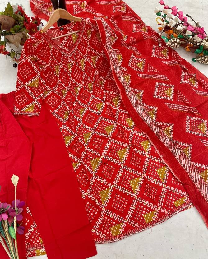 KF Red Kalaai Printex Embroidery Designer Kurti With Bottom Dupatta At Wholesale Price