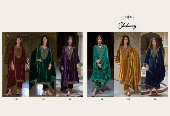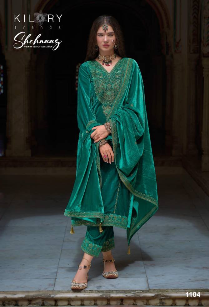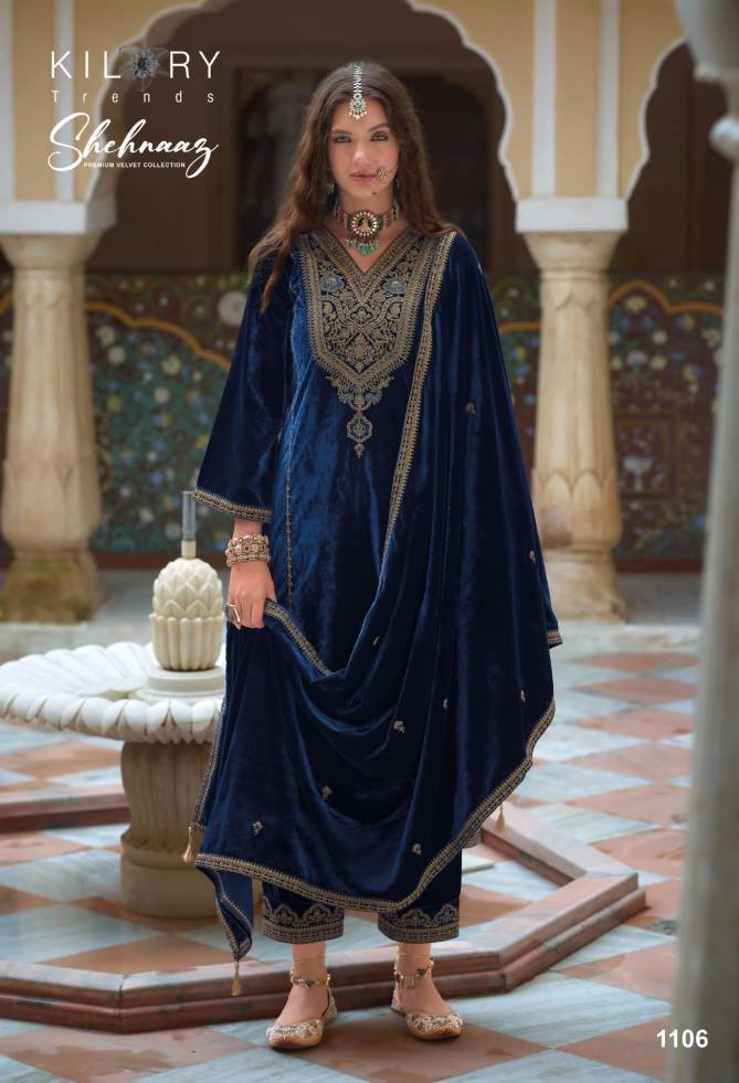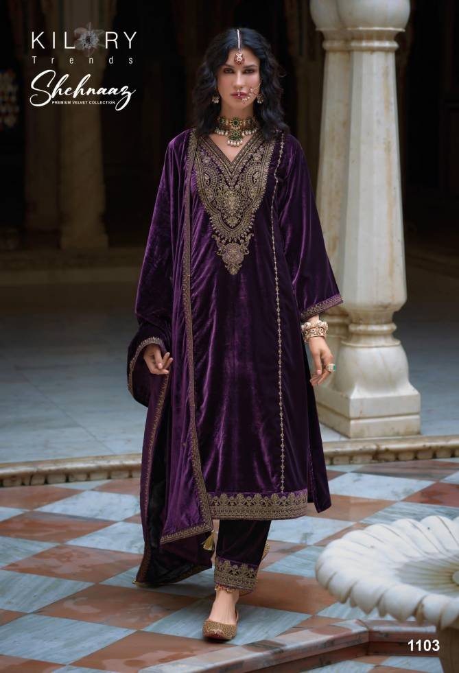 Kilory Shehnaaz Winter Wear Silk Velvet Dress Material At Wholesale Price