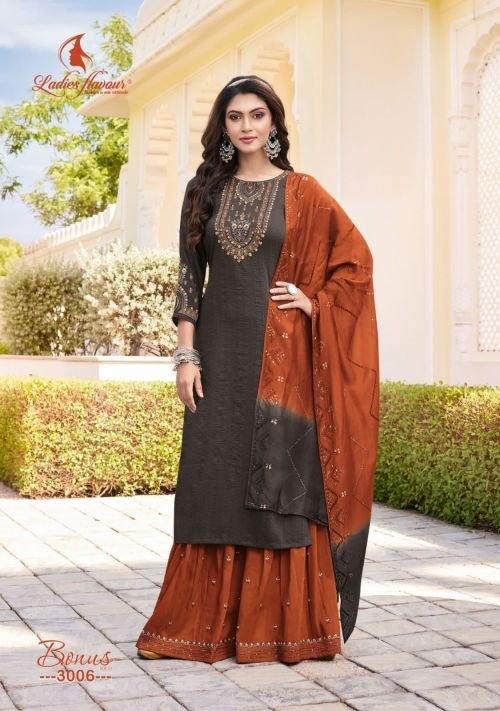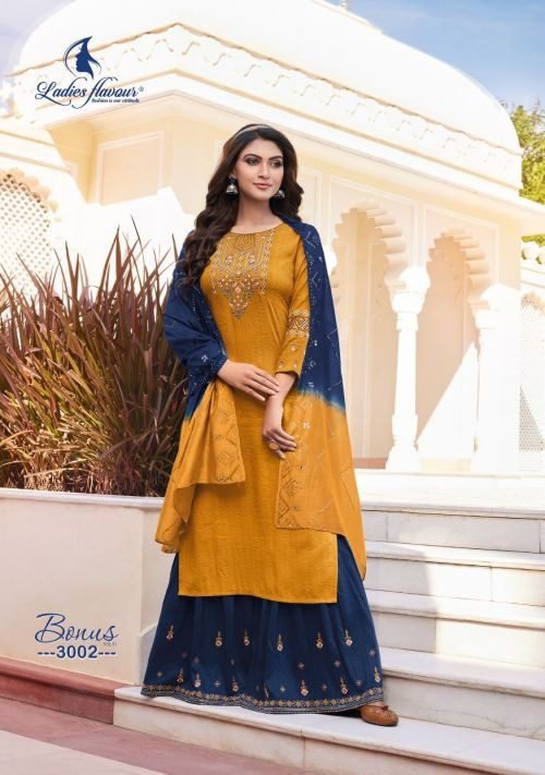 Ladies Flavour Bonus Vol 3 Fancy Kurti With Bottom(Sharara) Dupatta Collection In Wholesale