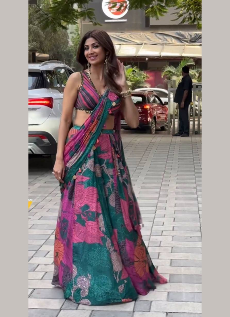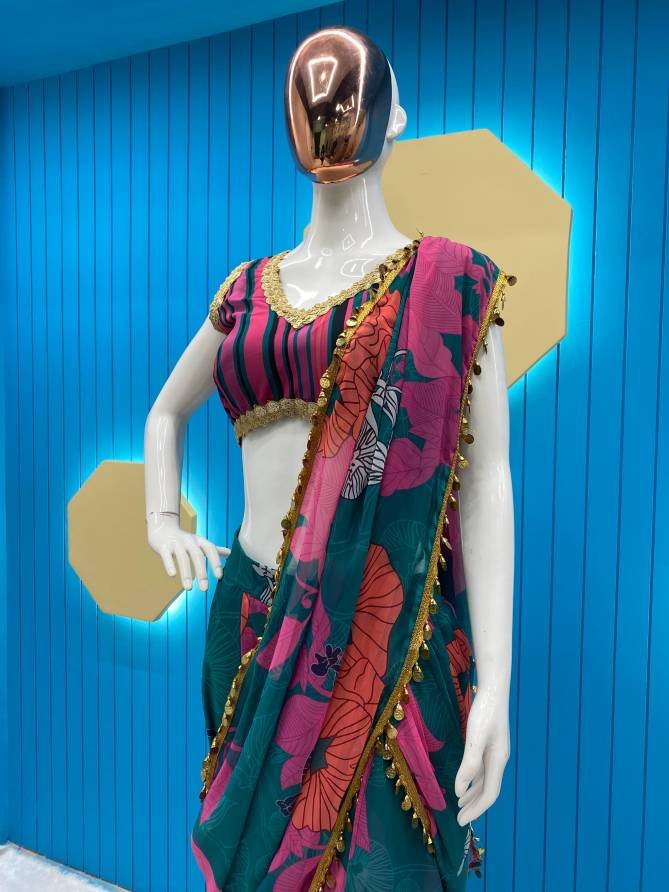 FAUX GEORGETTE WITH PRINT | FULLSTITCHED LEHENGA SAREE WITH FULLFLAIR AND COIN LACE WORK | CHOLI : FAUX GEORGETTE WITH PRINT AND LACE WORK (1 mtr)UNSTICHED
