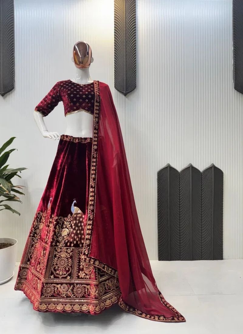Lg 635 Velvet Designer Wedding Wear Lehenga Choli At Wholesale Price