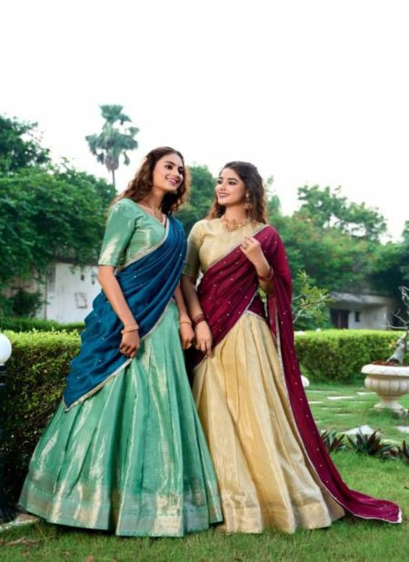 FabricLehenga(Stitched)Lehenga Fabric : Kanchipuram, Lehenga Work : Zari Weaving Work, Lehenga Waist : SUPPORTED UP TO 42, Lehenga Closer : Drawstring With Zip, Stitching : Stitch With Canvas, Length : 41, Flair : 3.80 Meter, Inner : Micro Cotton | Blouse(Unstitched):- Blouse fabric : Kanchipuram, Blouse Work : Zari Weaving Work, Blouse Length : 0.90 Meter | Dupatta Fabric : Vichitra Silk, Dupatta Work : Sequins And Thread Embroidery Work With Lace Border, Dupatta Length : 2.4 Meter | Package Contain : Lehenga, Blouse, Dupatta, Drawstring (Single Available – 100 Rs. Per Pcs Extra for Singles)