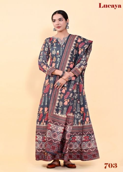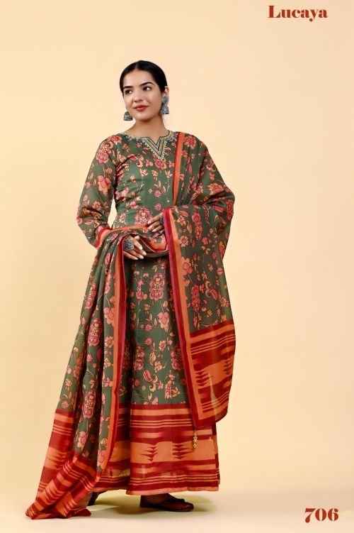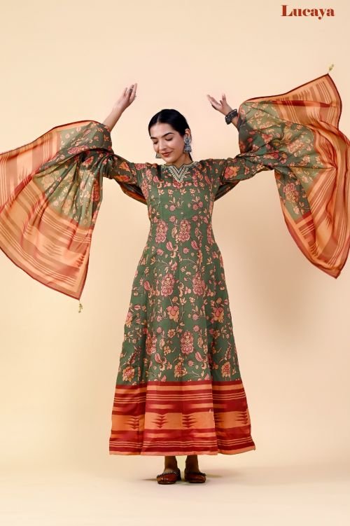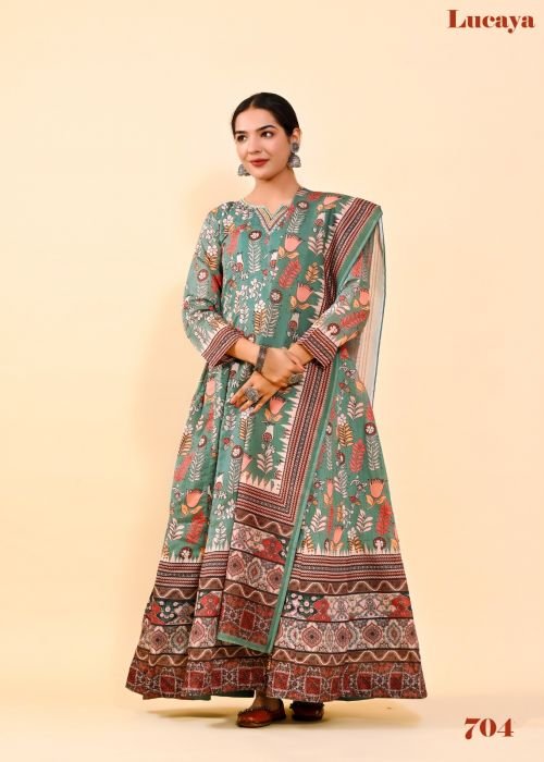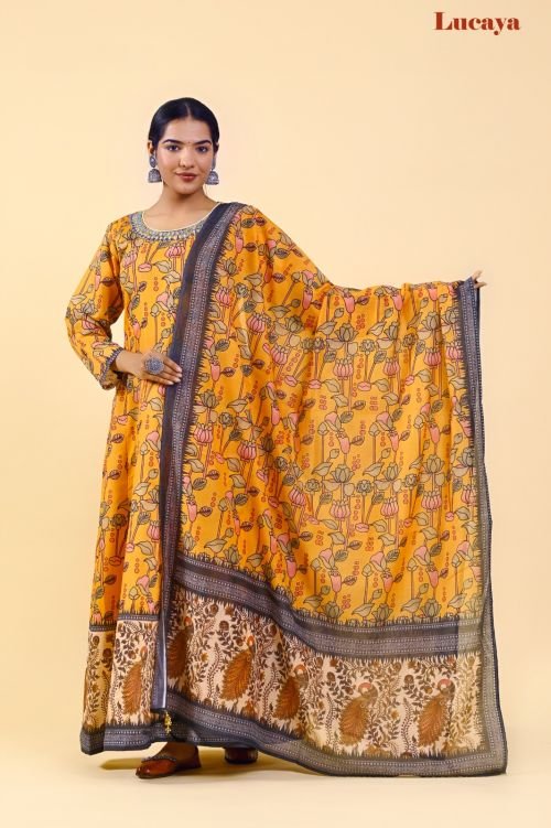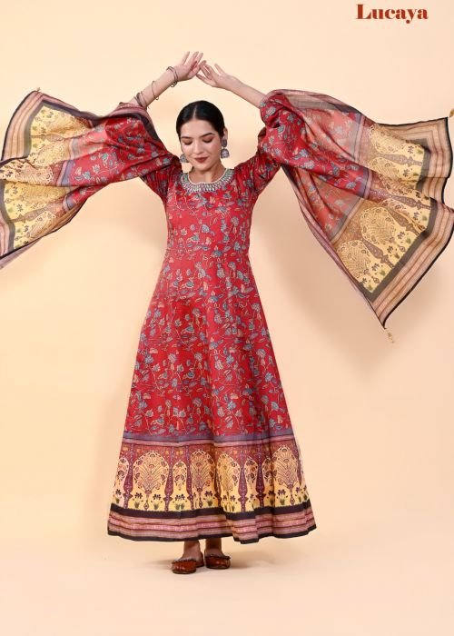 Lucaya Vol 7 Kalamkari Printed Anarkali Readymade Chanderi Silk Gown With At Wholesale Price Dupatta