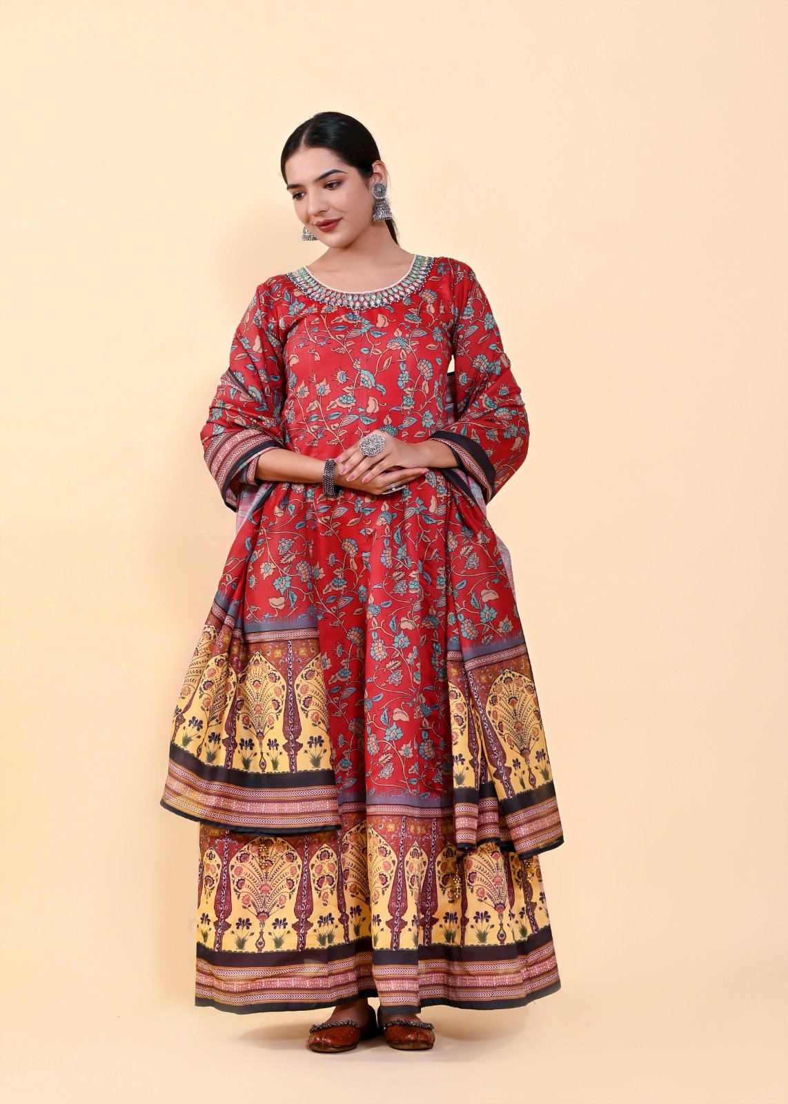 Heavy Chanderi Silk | Digital Heavy Kalamkari Print | Hand Work Beads and Stones | Dupatta: Heavy Chanderi Silk with Beautiful Latkan | Dupatta Length: approx. 2.5 MTR | Full Inner in all with Attached Cancan, Lining & Padded | ( 3XL To 6XL PRICE – 2500/- ) | Dispatched Time 7-10 Days Approx.
