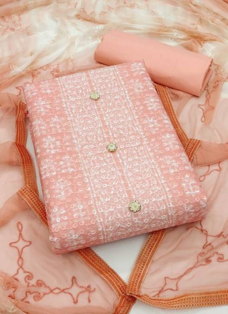 Top :- HEAVY COTTON CHIFLY WORK WITH SELF EMBROIDERY WORK | Dupatta :- CHIFFON WITH work | Bottom – HEAVY COTTON (Single Available – 100 Rs. Per Pcs Extra for Singles)