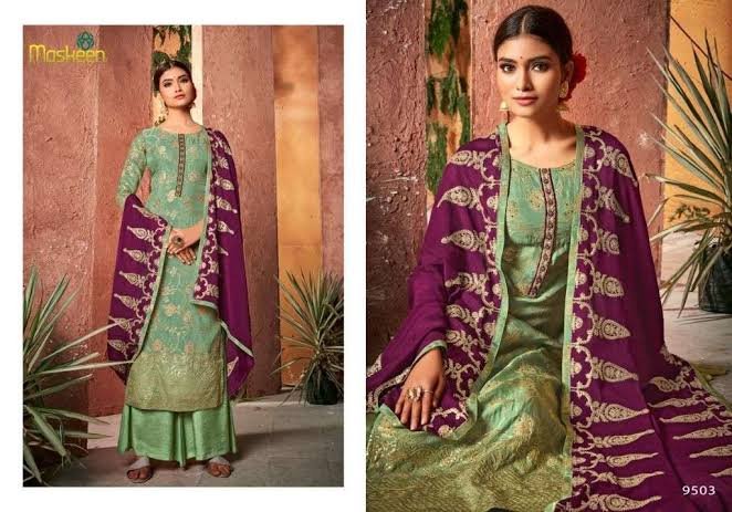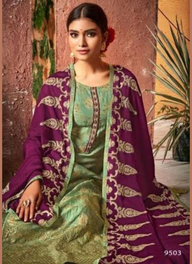 Top – Pure dola Jacquard butta and kalamkari with embroidery work and hand work | bottom and inner- viscose Santoon | Dupatta – viscose georgette with heavy embroidery and handwork