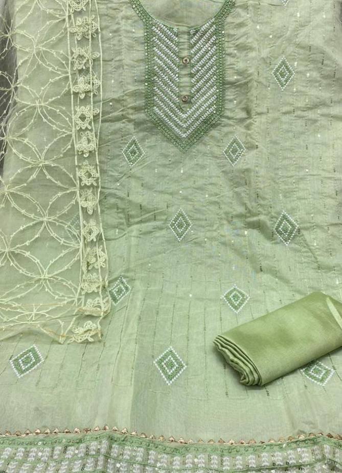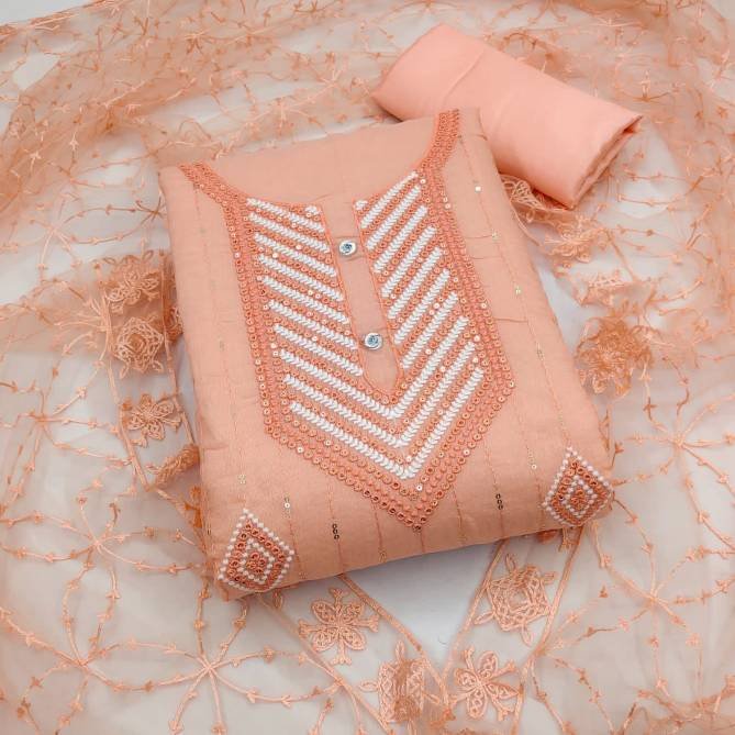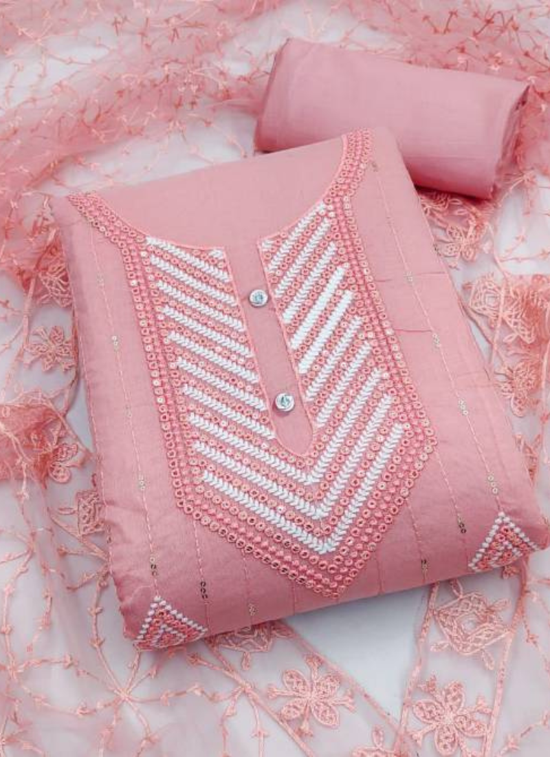 Top : Semi Modal With Sequence Work With Fancy Lace (1.90 MTR) | Inner & Bottom : Heavy Santoon (1.60&2.00 MTR) | Dupatta : Net With Chine Embroidery Work (2.10 MTR) (Single Available – 100 Rs. Per Pcs Extra for Singles)
