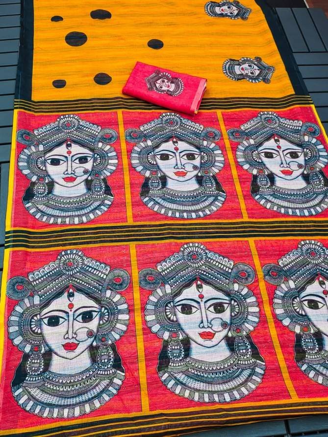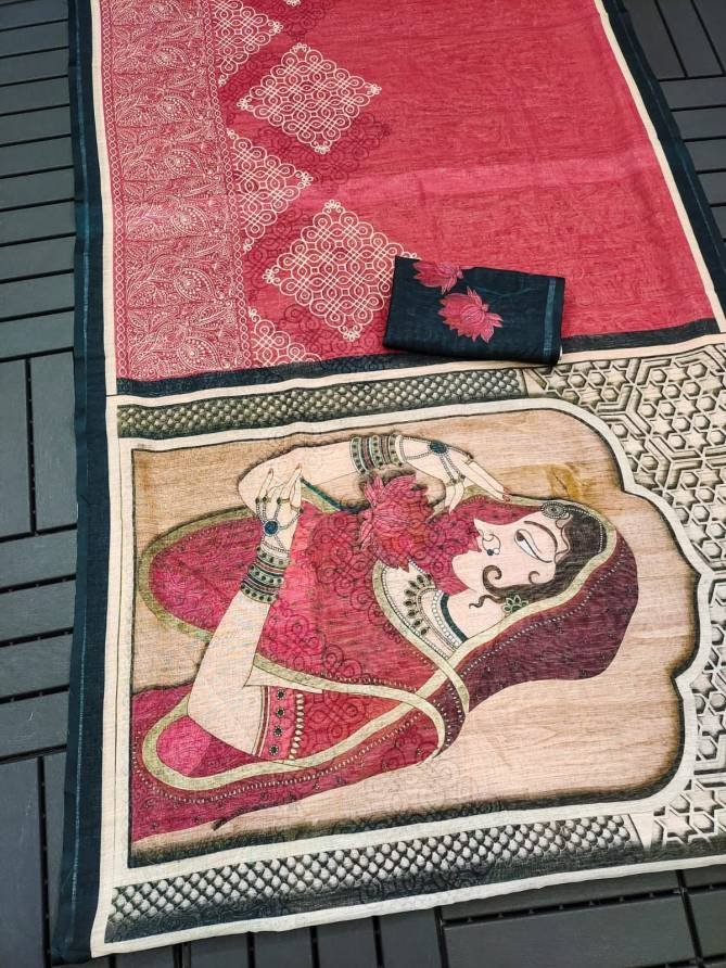 Plain Linen Work – Digital Print | Saree length – 6.30 Meter (With Digital Blouse) | Blouse Fabric – Plain Linen with Digital print (Single Available – 100 Rs. Per Pcs Extra for Singles)