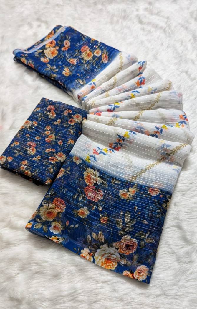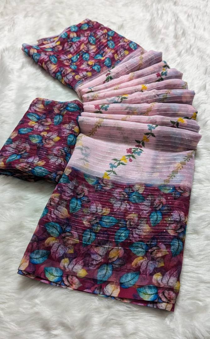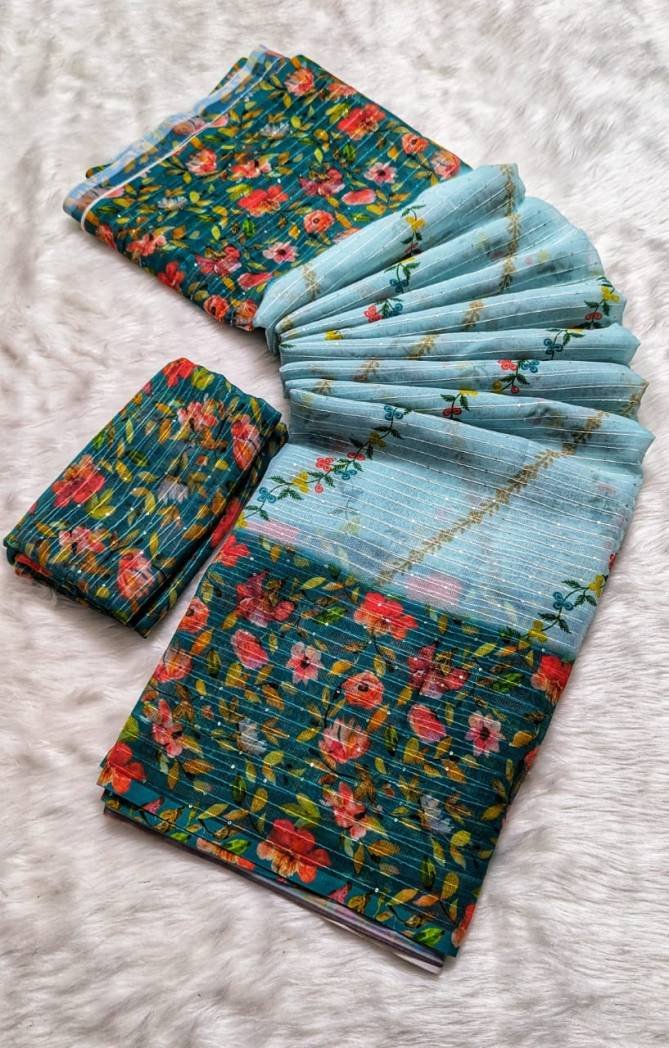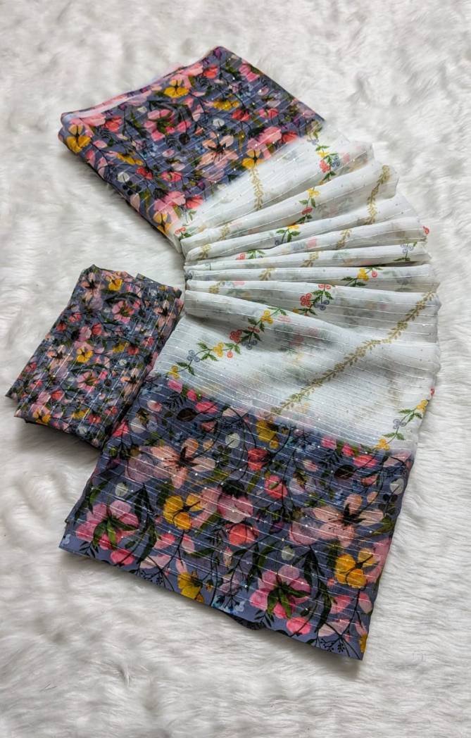 Fabricpure Georgette with Crochet 2mm Sequence Work | Work – Digital Print | Saree length – 6.30 with digital blouse | Blouse – pure Georgette with Crochet 2mm Sequence Work (Single Available – 100 Rs. Per Pcs Extra for Singles)