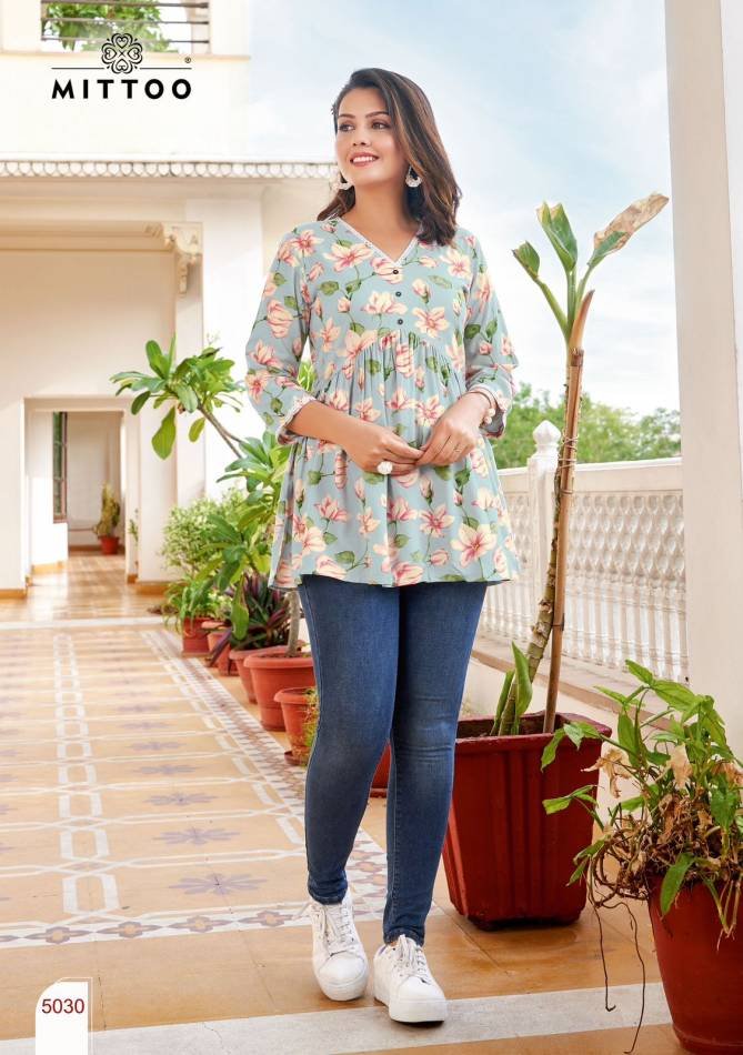 Mittoo Victoria Vol 6 Casual Wear Rayon Printed Top At Wholesale Price