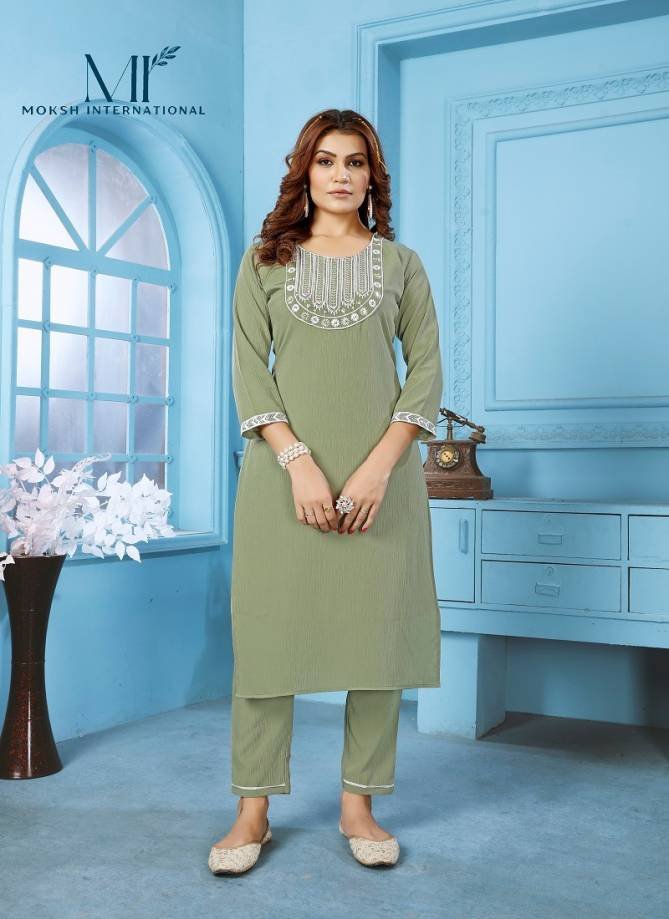 Moksh Goldy Vol 1 Casual Wear Embroidery Work Cotton Kurti With Bottom Wholesale Catalog