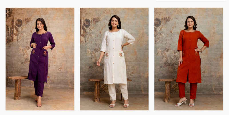 Naisha K 259 Cotton Flex Embroidered Kurti With Bottom At Wholesale Price