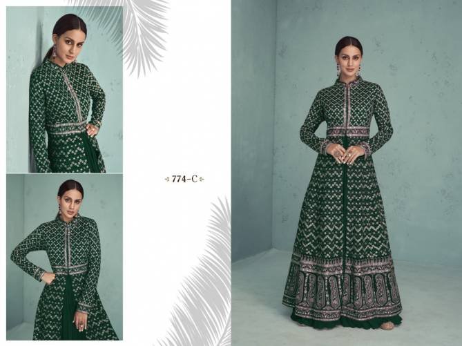 Top: Heavy Faux Georgette with Embroidery (3mm Squence) Work With Cottons Thread Work | Dupatta: Heavy Nazmeen Chiffon | Bottom: Heavy Santoon 2.25 MTR | Top Inner: Heavy Santoon With Joint Top | Length: Max up to 57” | Flair: Max up to 2.80+ MTR | Type: Semi Stitched ( Material )