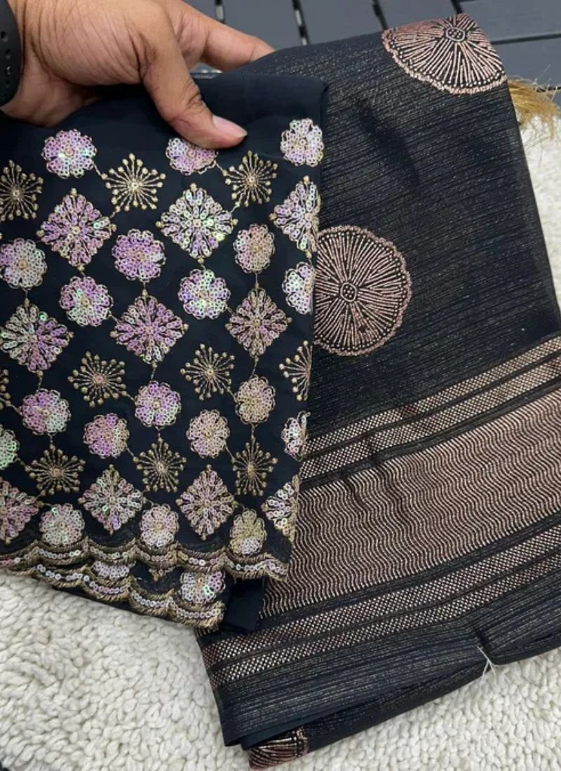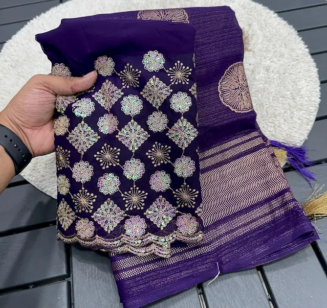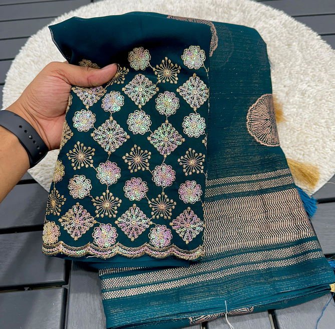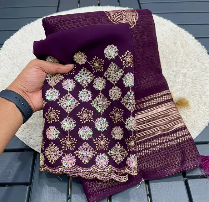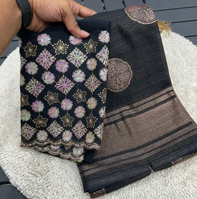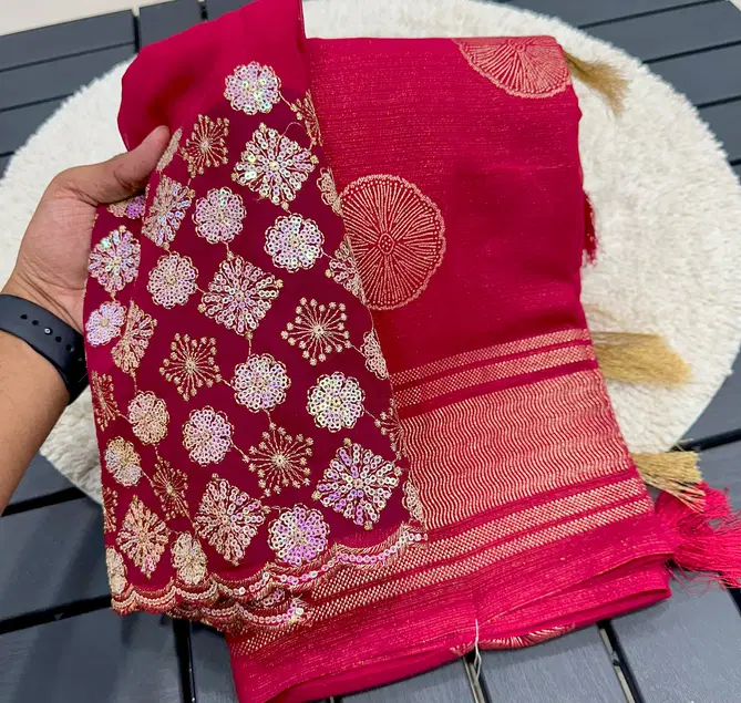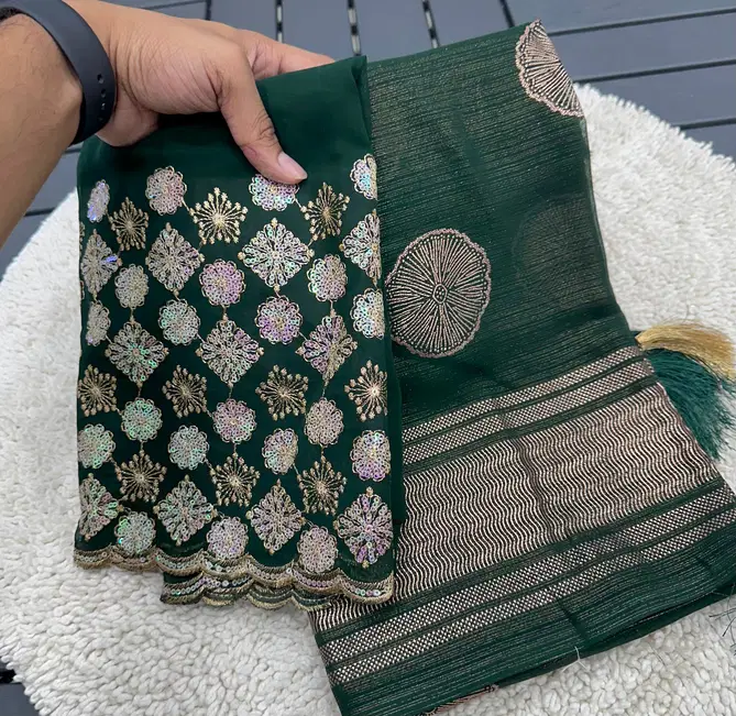 Fabricchiffon zari fabric with beautiful smoke work with beautiful embroidery blouse | Saree cut : 5/50 | Blouse piece: 0/80