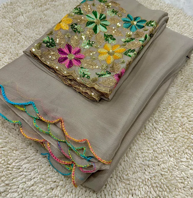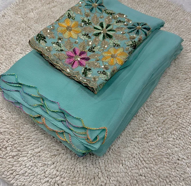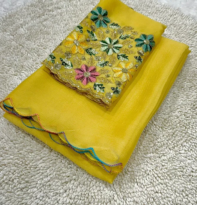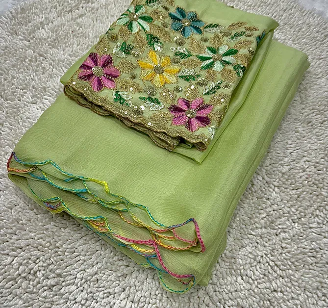 kiwi crush fabric limited addition with rainbow arka work border with tone to tone beautiful rich blouse | Saree cut : 5/50 | Blouse piece: 0/80 (Single Available – 100 Rs. Per Pcs Extra for Singles)