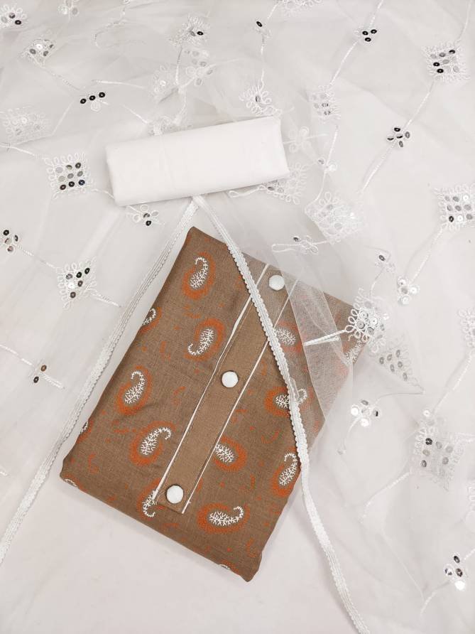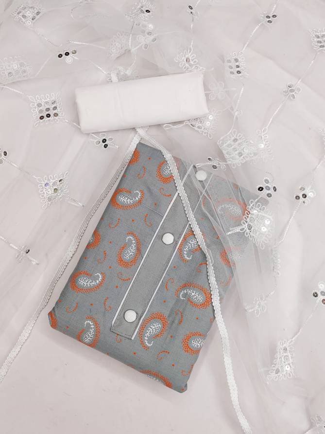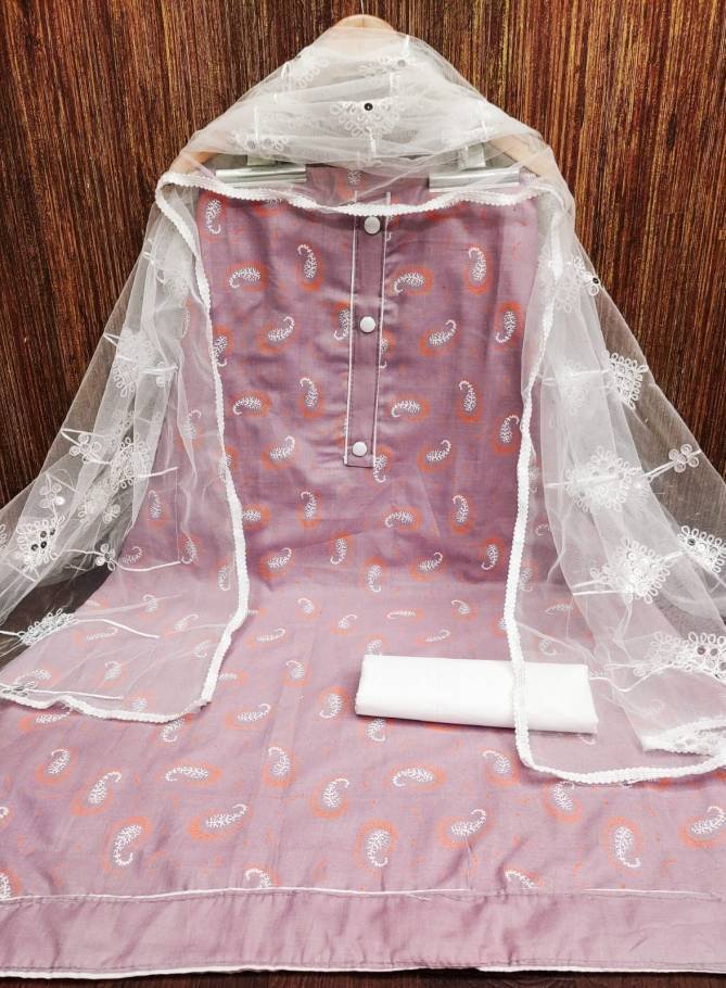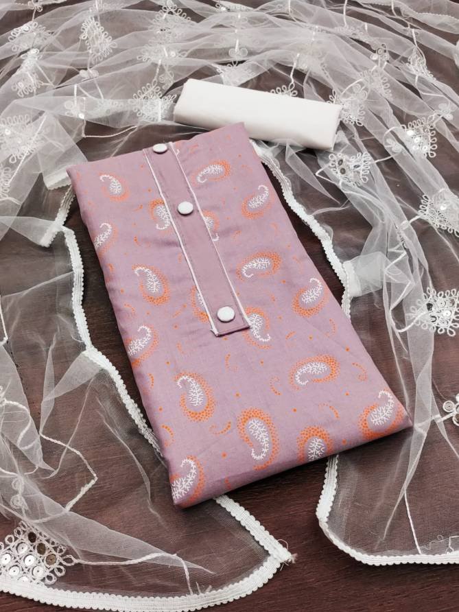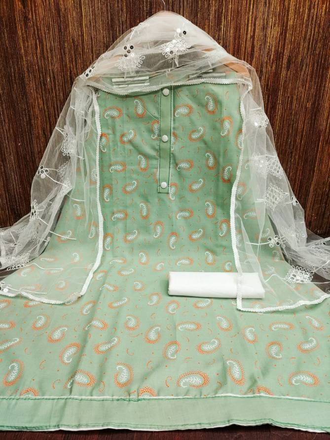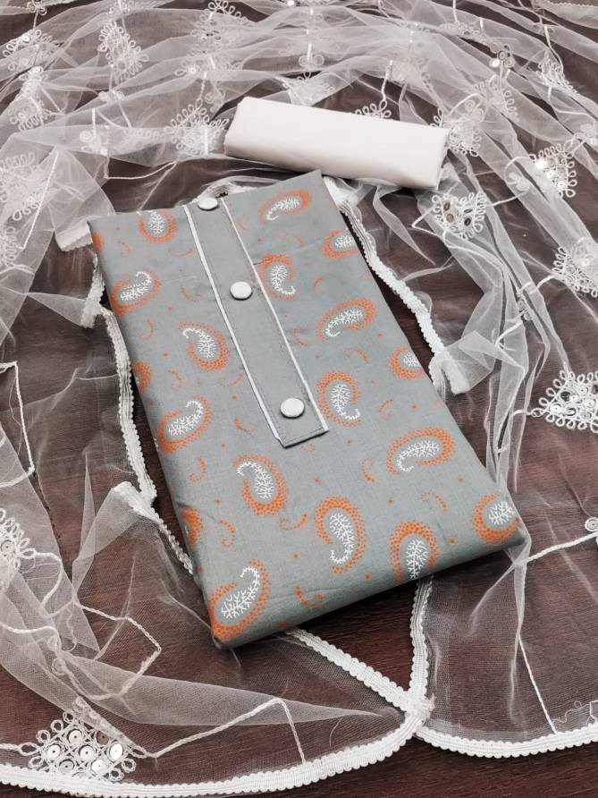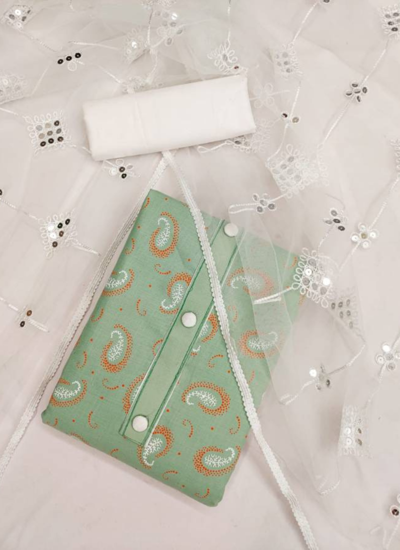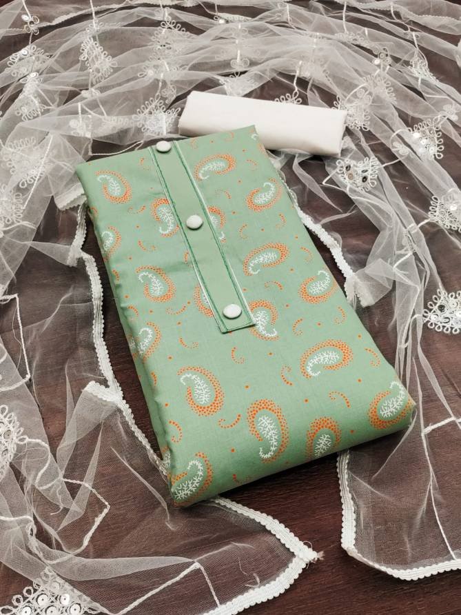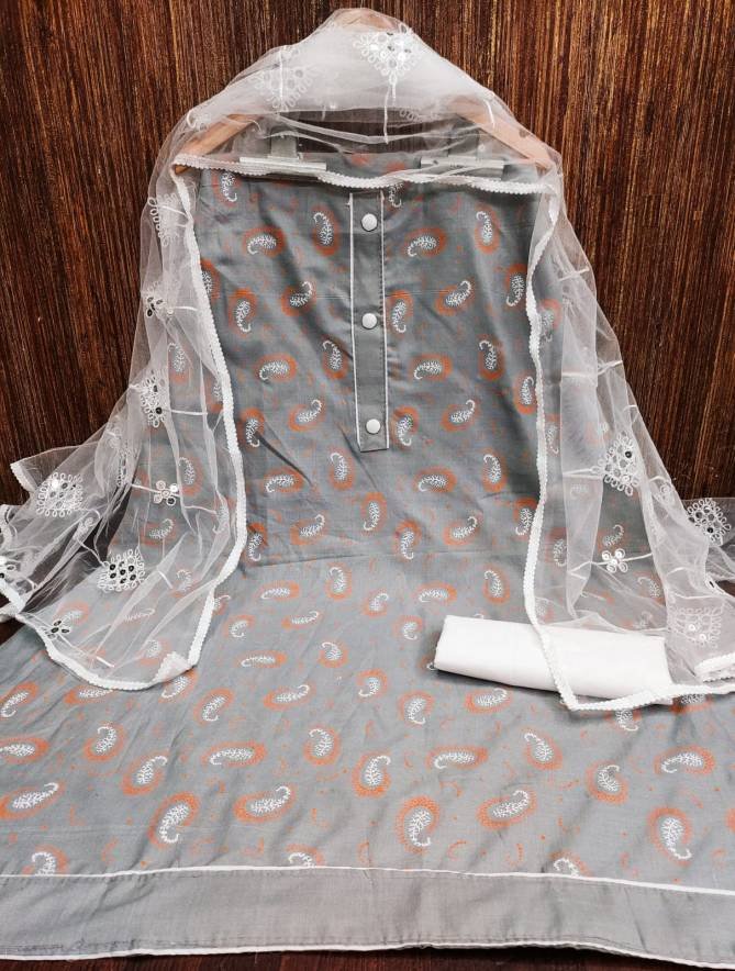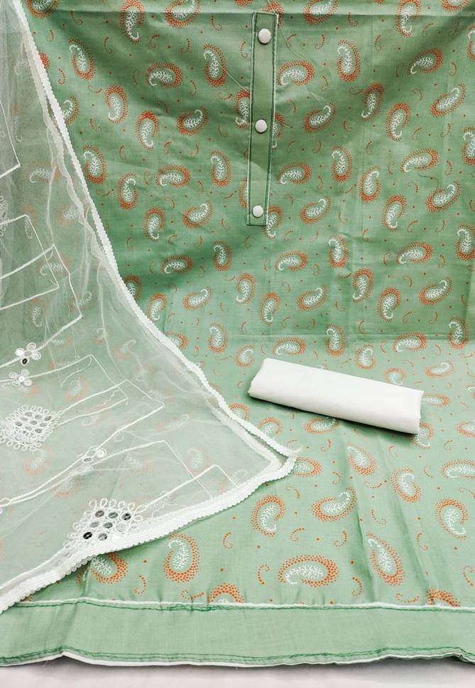 FabricTop Fabrics:- Cotton Slub With Print And Tai Button | Bottom Fabrics: Cotton | Dupatta : Net With Work Four Side Border
