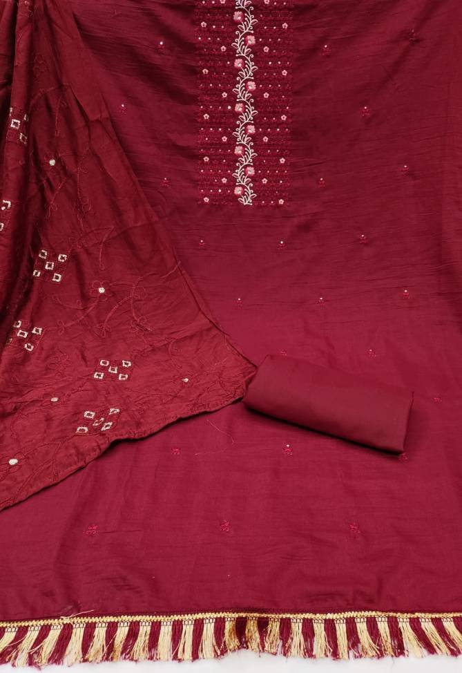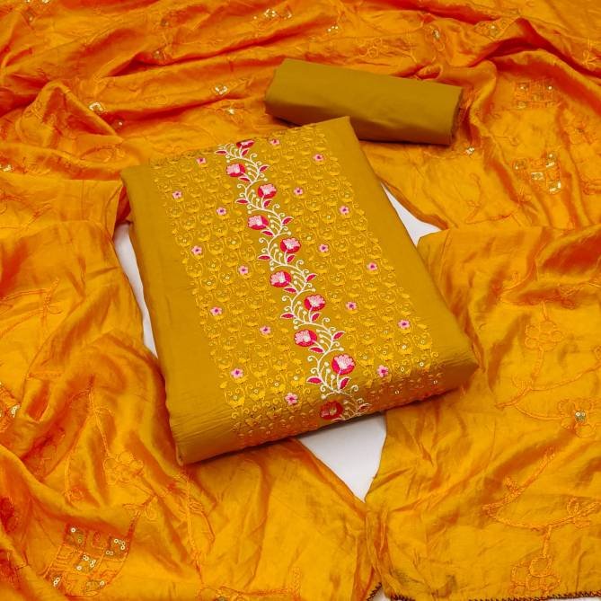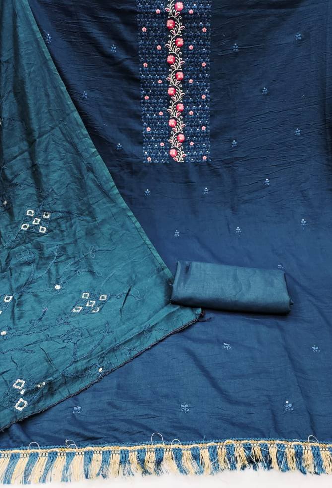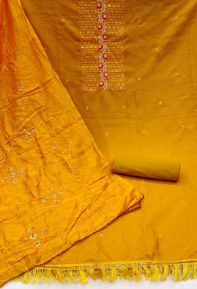 FabricTop Fabrics:- Parampara Fancy Neck Sequence Work | Bottom Fabrics:- Heavy COTTON (2.20 Mtr) | Dupatta: Chanderi Embroidery With Sequence Work