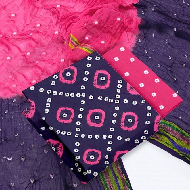 Non Catalog Bandhani Printed Designer Cotton Dress Materials At Wholesale Price