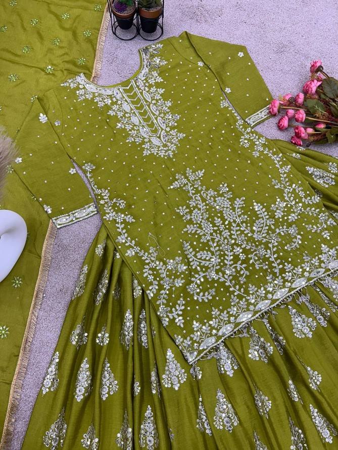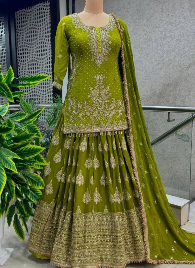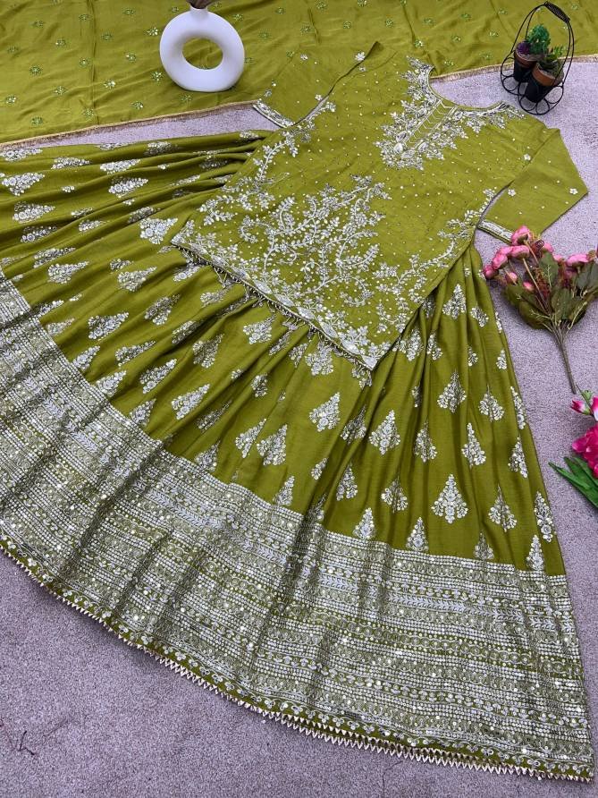 Top Fabrics : Pure Heavy Chinnon Silk With Heavy 5mm Embroidery Sequence Work With Sleeves | Top Inner : Heavy Micro Cotton | Top Lenght : 36-38 Inch | Top Size : 42 xl free size With (44)xxl Marjin (full stitched ) Lehenga Fabric :Pure Heavy Chinnon Silk With Heavy 5mm Embroidey | Sequence Work (semi stitched)Lehenga Inner :Heavy Micro Cotton | Lehenga Flair : 3 Meter | Dupatta Fabrics : Pure Heavy Chinnon Silk With Embroidery Sequence Work and Embroidery Sequence lace Border | Dupatta Length: 2.10 mtr