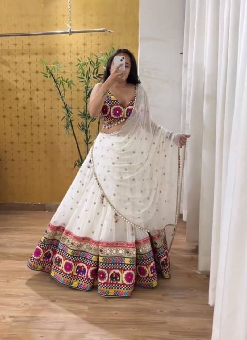 Fox Georgette | Work:- Heavy Gamathi Work | Inner:- Micro Cotton | Size:- M upto L margin | XL upto 2xl margin (Fully Stitched) Lehenga Fabric:- Fox Georgette | Work:- Gamathi Work | Inner:- Micro Cotton | Flair:- 3 Meter | Work:- Gamathi Work | Size:- 44 | Dupatta Fabric:- Fox Georgette | Size:- 2.30 Meter | Work:- Embroidery Sequence Work (Single Available – 100 Rs. Per Pcs Extra for Singles)