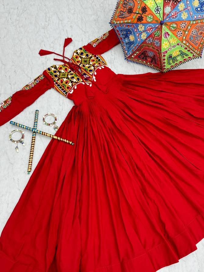 Pc N18 Gamathi Mirror Work Georgette Navratri Gown At Wholesale Price