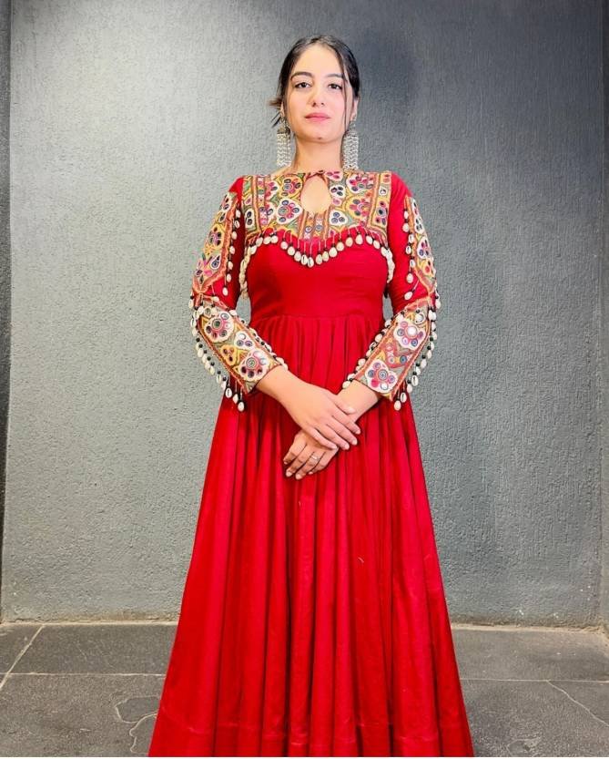 fiyona | Work:- Heavy Gamathi Work with Real Mirror Work | Inner:- Micro Cotton | Length:- 55/56 | Flair:- 3 Meter | Size:- M upto L margin | XL upto 2xl margin (Fully Stitched)