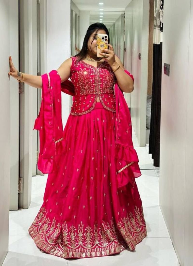 Top Fabric:- Chinon | Work:- heavy embroidery Work & Thread Work | Inner:- Micro Cotton | Size:- M upto L margin | XL upto 2xl margin (Fully Stitched) Lehenga Fabric:- Chinon | Inner:- Micro Cotton | Work:- Embroidery Thread Work | Flair:- 3.50 Meter | Size:- 44 | Dupatta Fabric:- Chinon | Size:- 2.30 Meter | Work:- embroidery Work (Single Available – 100 Rs. Per Pcs Extra for Singles)
