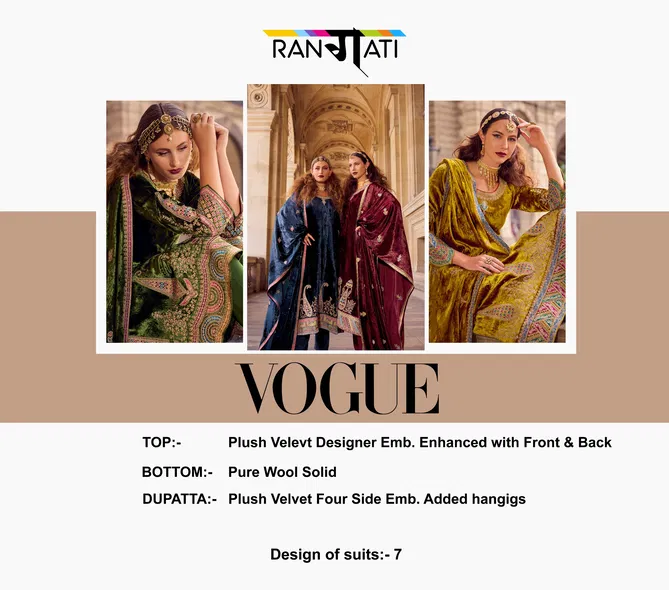 Rangati Vogue Embroidery Designer Viscose Velvet Salwar Kameez Wholesale Catalog