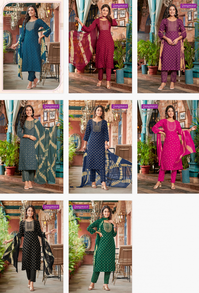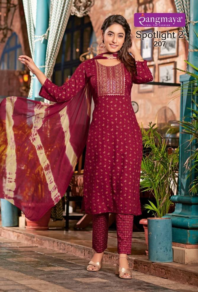 Rangmaya Spotlight Vol 2 Rayon Printed Ladies Kurti With Bottom Dupatta Wholesale Catalog
