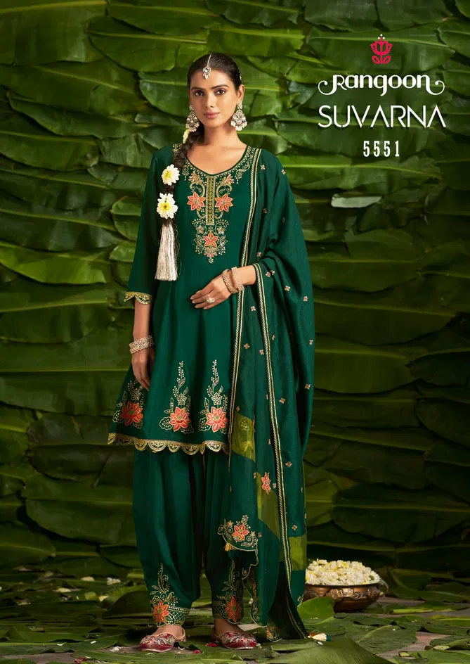 Rangoon Suvarna Fancy Designer Work Readymade Suits Wholesale Catalog