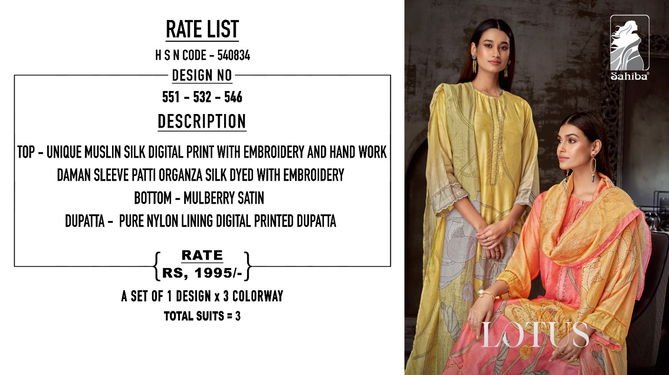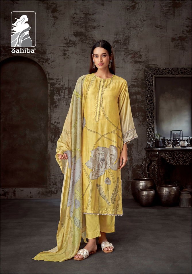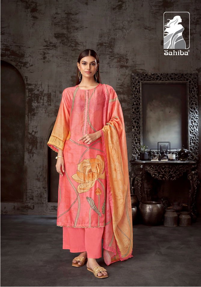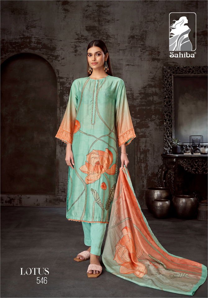 Sahiba Lotus Muslin Silk Digital Printed Dress Material Wholesale Catalog