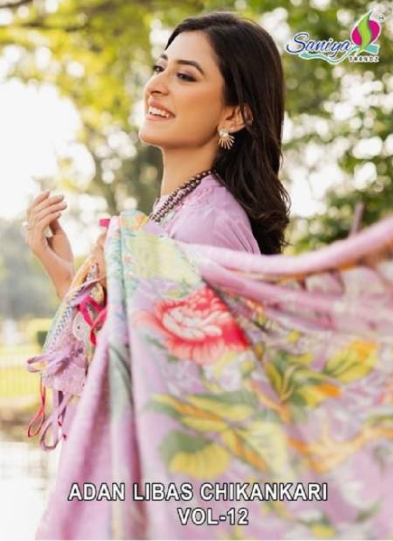 Saniya Trendz Adan Libas Chikankari Vol 12 Cambric Cotton Pakistani Suits Wholesale Catalog
