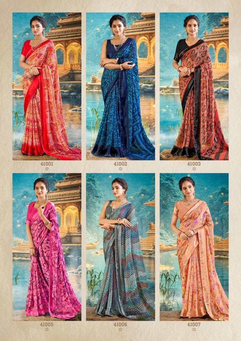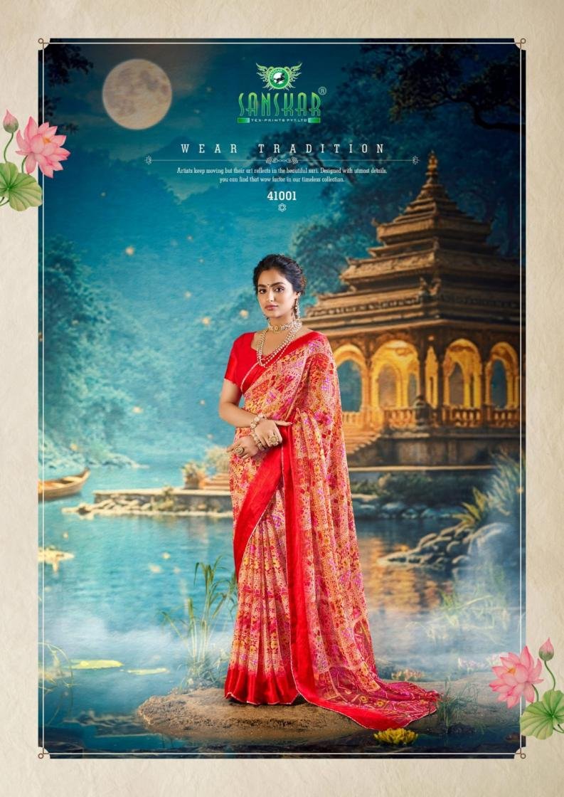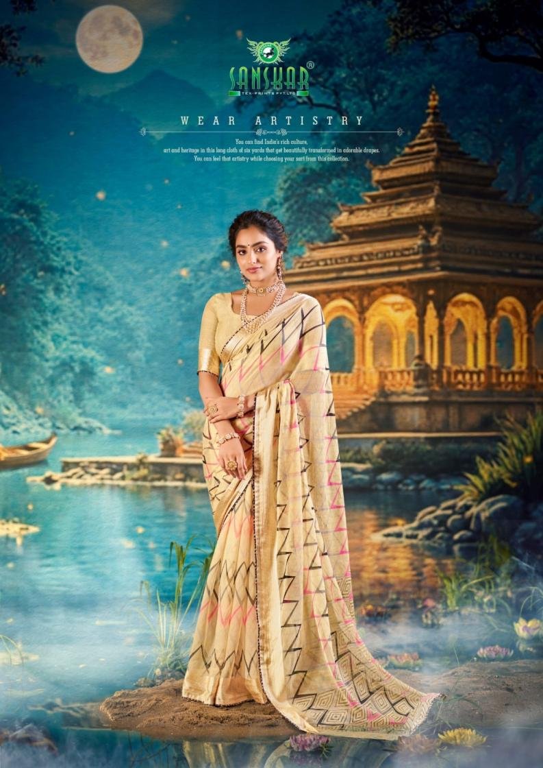 Sanskar Tex Sarangi Prints Hit Design Malai Chiffon Sarees Wholesaler